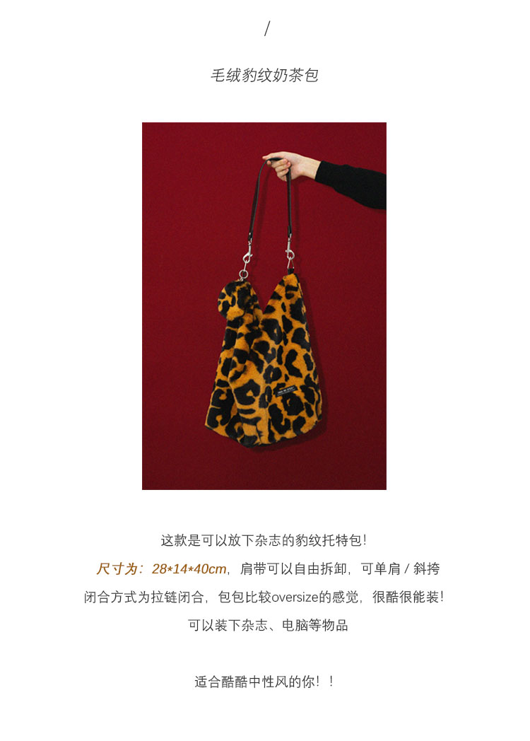 〖HIDDENNOTES〗小众托特包 豹纹毛绒斜挎包 无性别风百搭通勤包