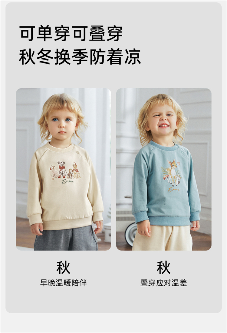 【宝宝服饰】EMXEE嫚熙24年新款A类童装开肩圆领长袖卫衣