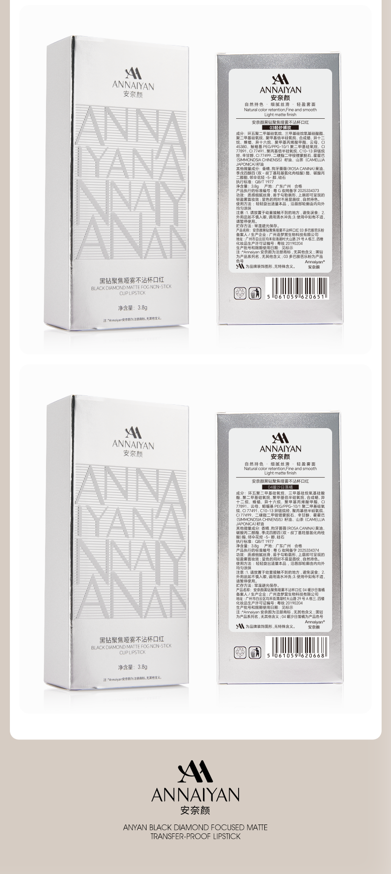 英国annaiyan安奈颜 黑钻聚焦哑雾不沾杯口红 4款型号可选