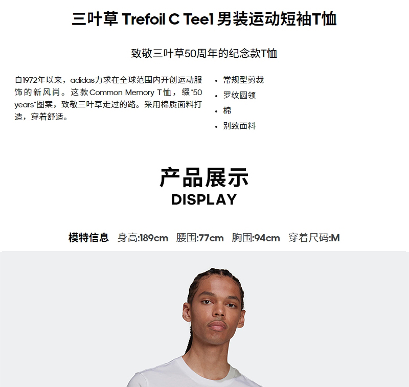 阿迪达斯Trefoil C Tee1 运动短袖T恤HC7167