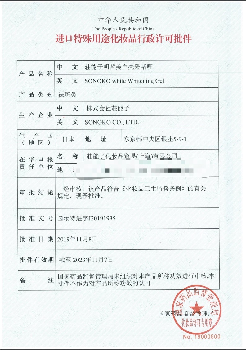 (意思就是真 · 美白而且是中日美白双特证