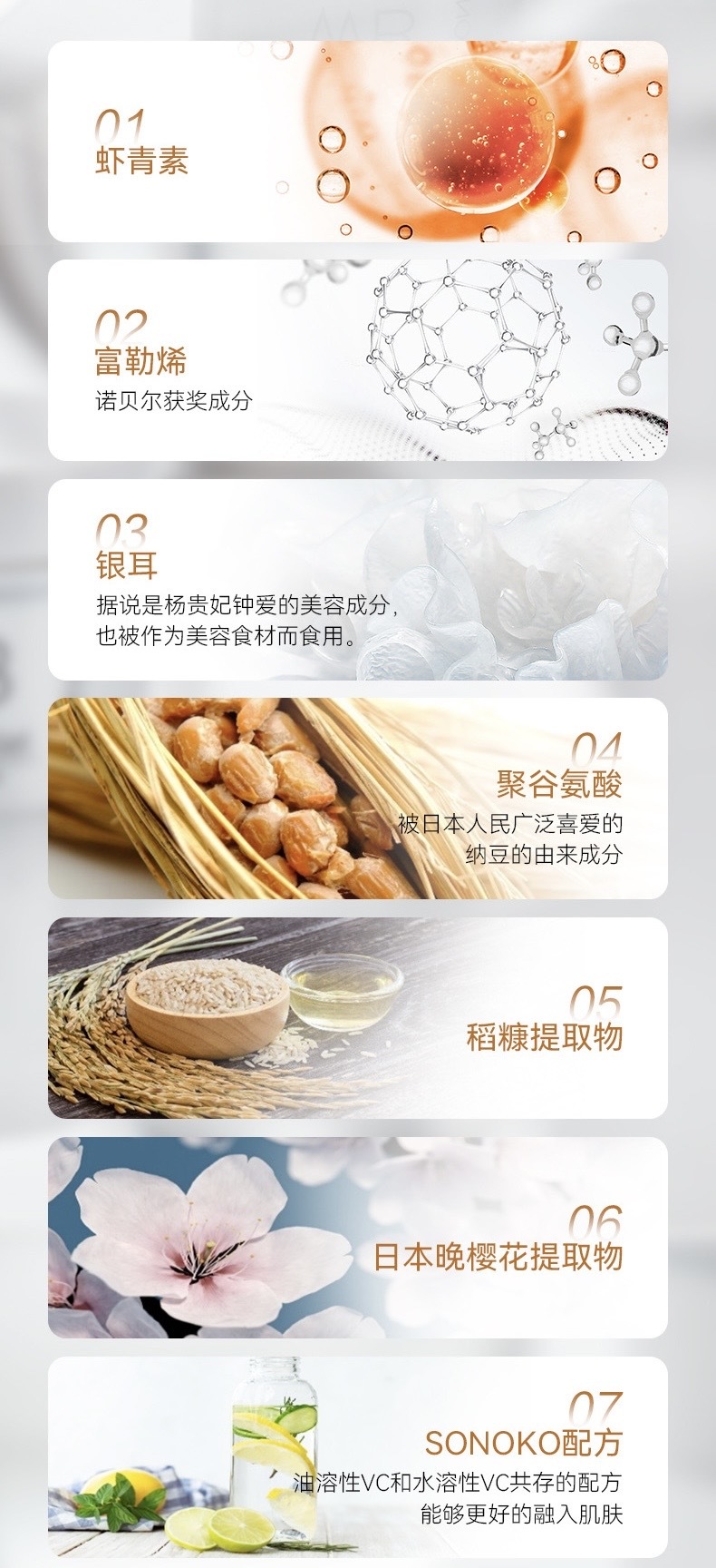 🔺稻糠提取物:抗氧化!美白!淡斑!提高皮肤的持水能力,减少皱纹,增加皮肤弹性,延缓皮肤衰老。