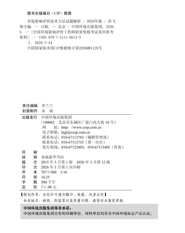 环境影响评价技术方法试题解析:2026年版/彭飞翔主编. 9787511166135