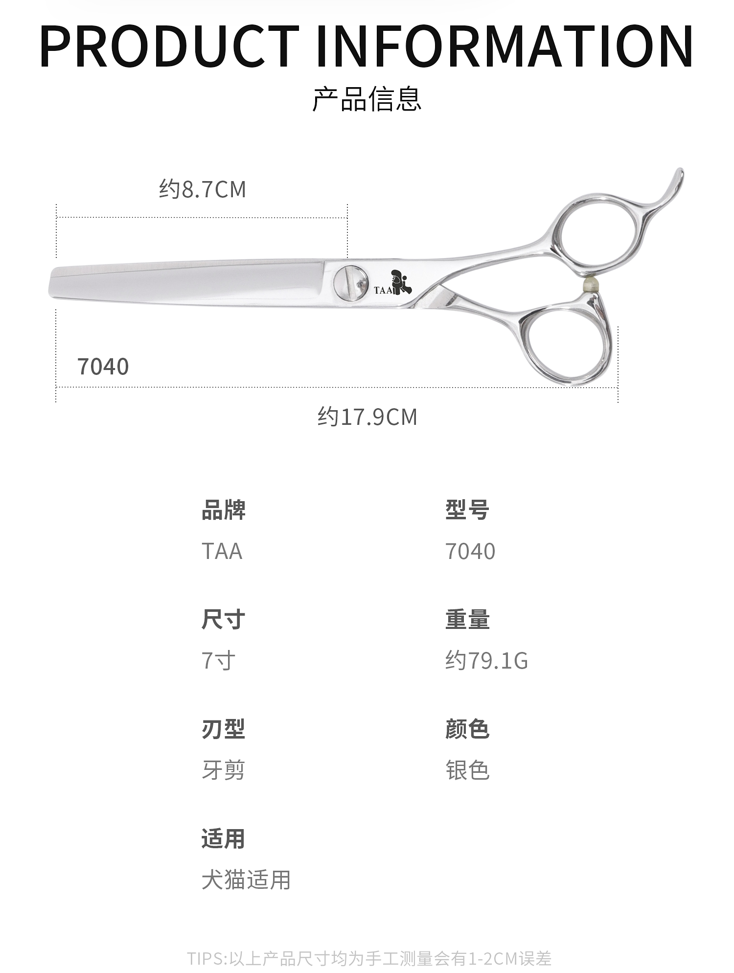 TAA它它宠物美容7寸蓬蓬剪7040狗猫泰迪精修蓬松