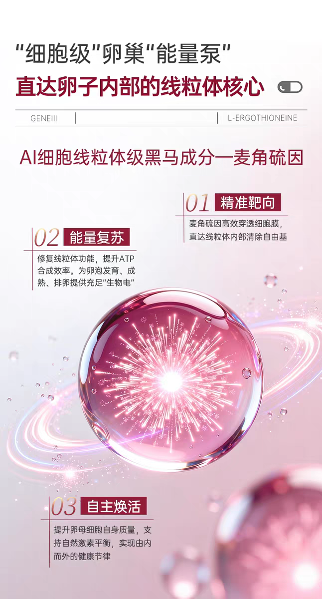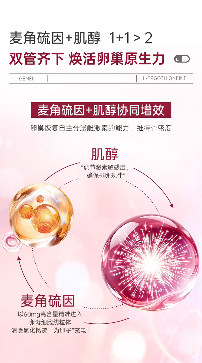 仅三麦角硫因卵巢焕活胶囊🌸卵巢的细胞级养护“秘密”,让时光慢下来,无激素,更安心,卵巢早衰预防,针对备孕、卵泡发育不良的人群!