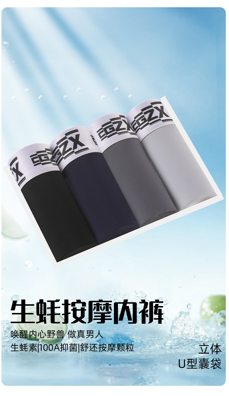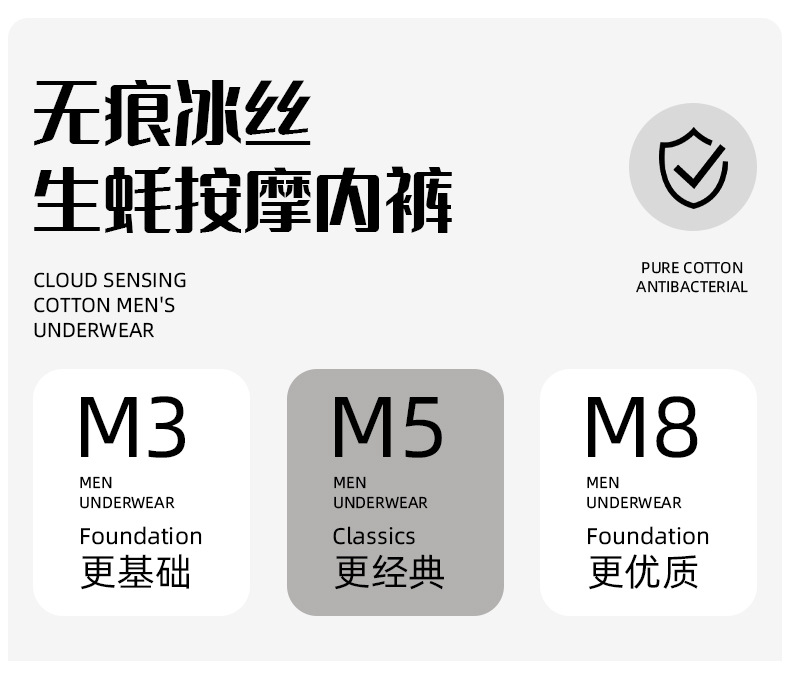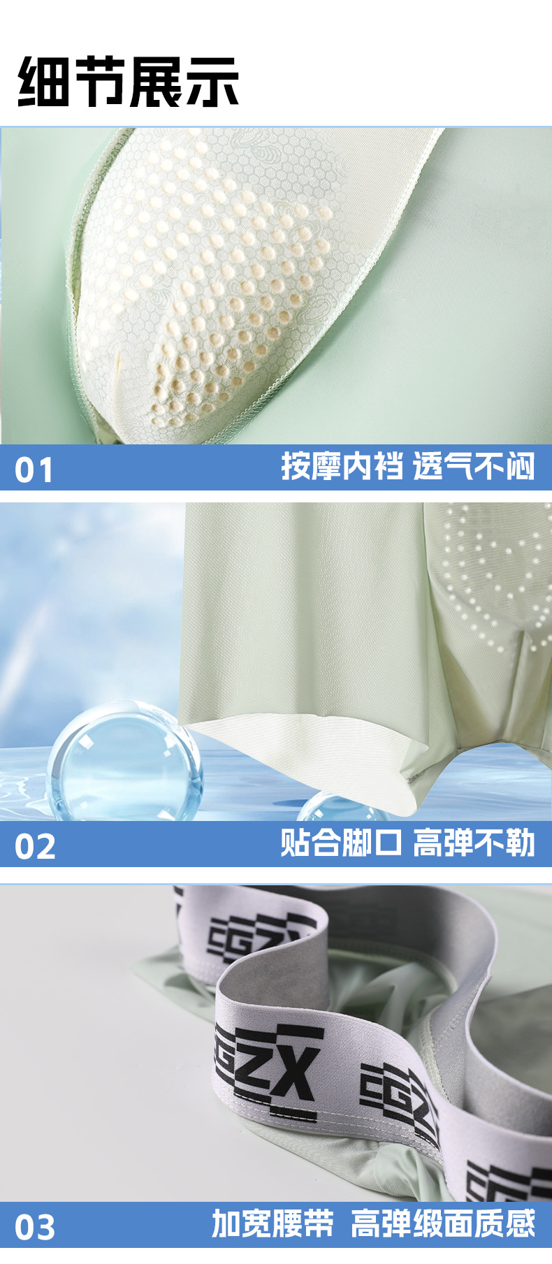 【捡漏!49.9抢3条!男人的第二层皮肤】0.01CM超薄冰丝内裤❄️166颗按摩颗粒唤醒野性💥24小时透气抗菌,舒适升级!100A抗菌男士 冰丝内裤生蚝物理按摩颗粒内裤 男士网孔透气四角内裤裤衩