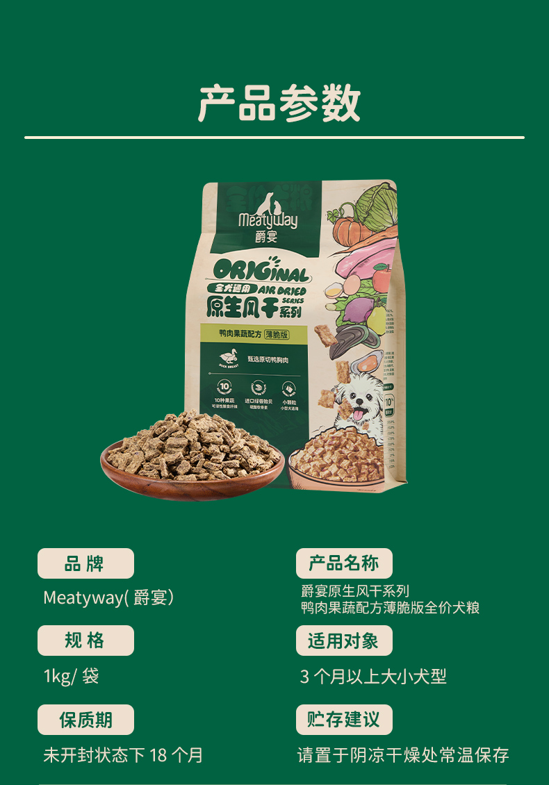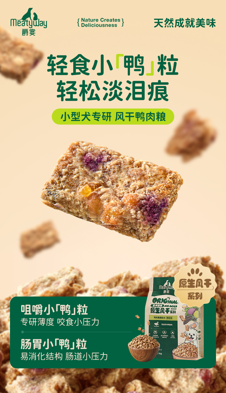 Meatyway爵宴风干犬粮小型犬嚼宴狗粮泰迪比熊博美鸭肉2斤正品