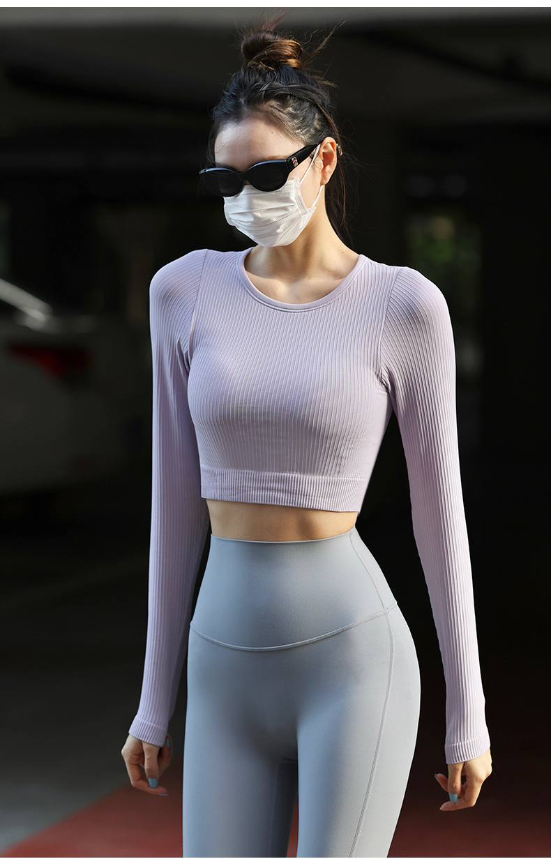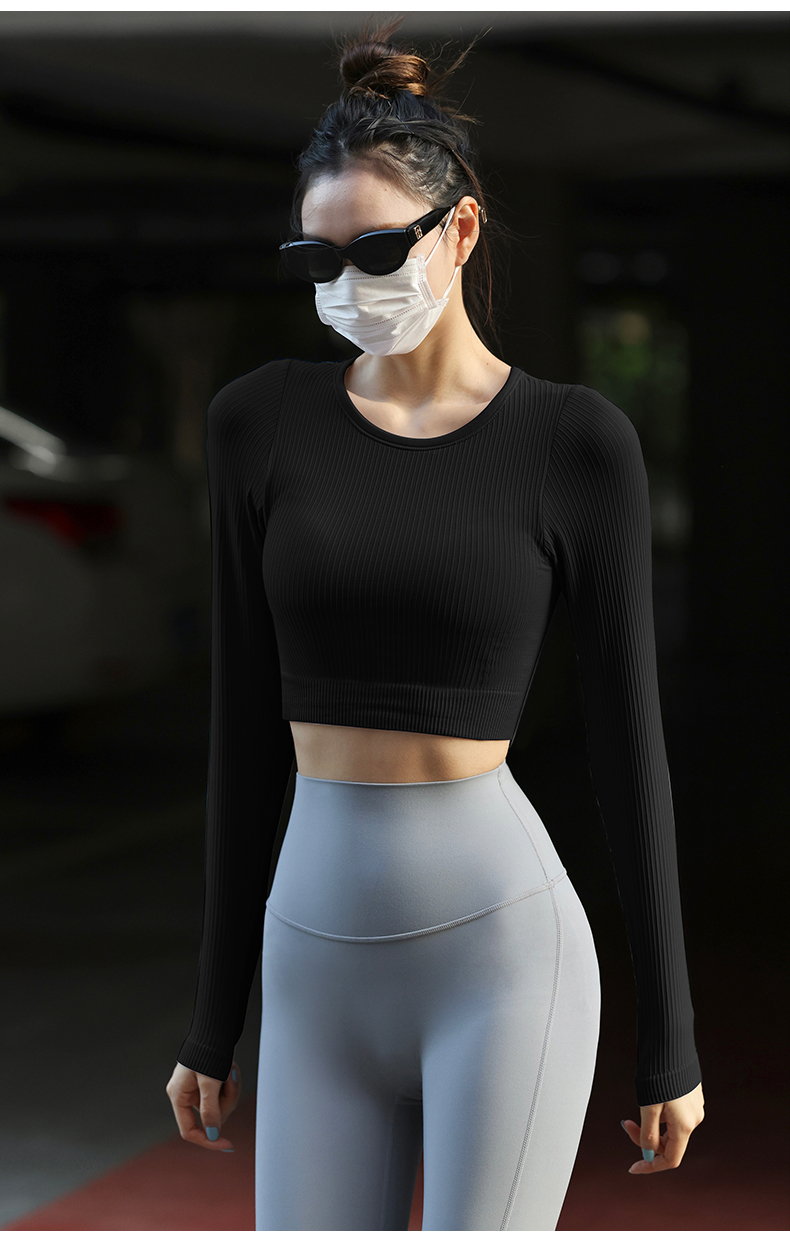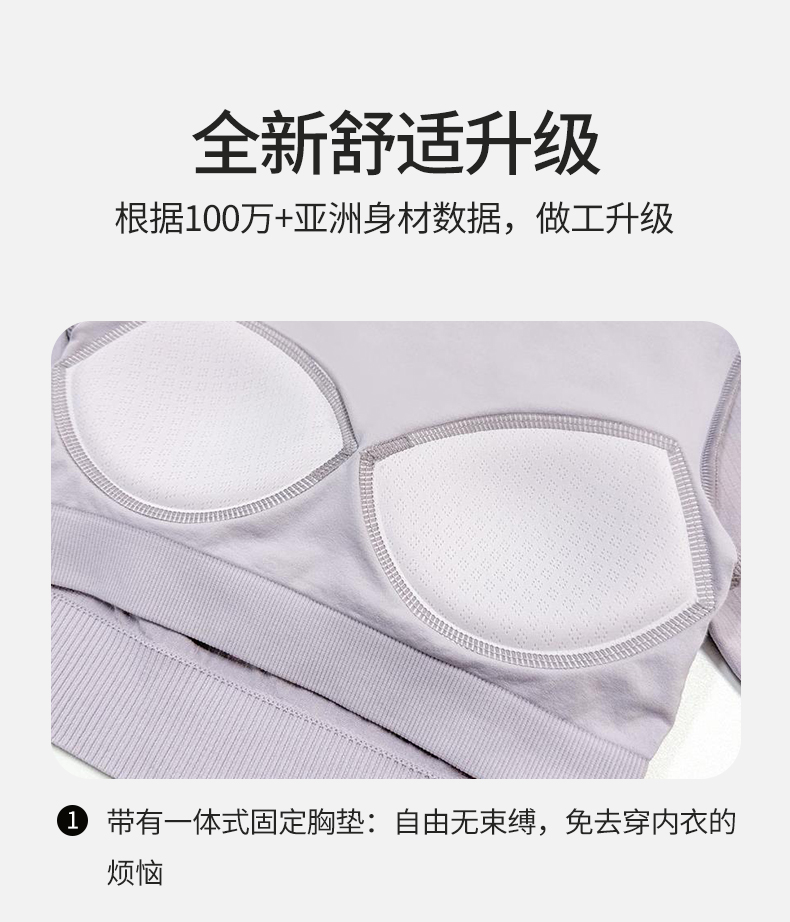 一体式胸垫长袖 无缝针织 亲肤不冰凉 舒适不勒 透气吸汗 显瘦显高
