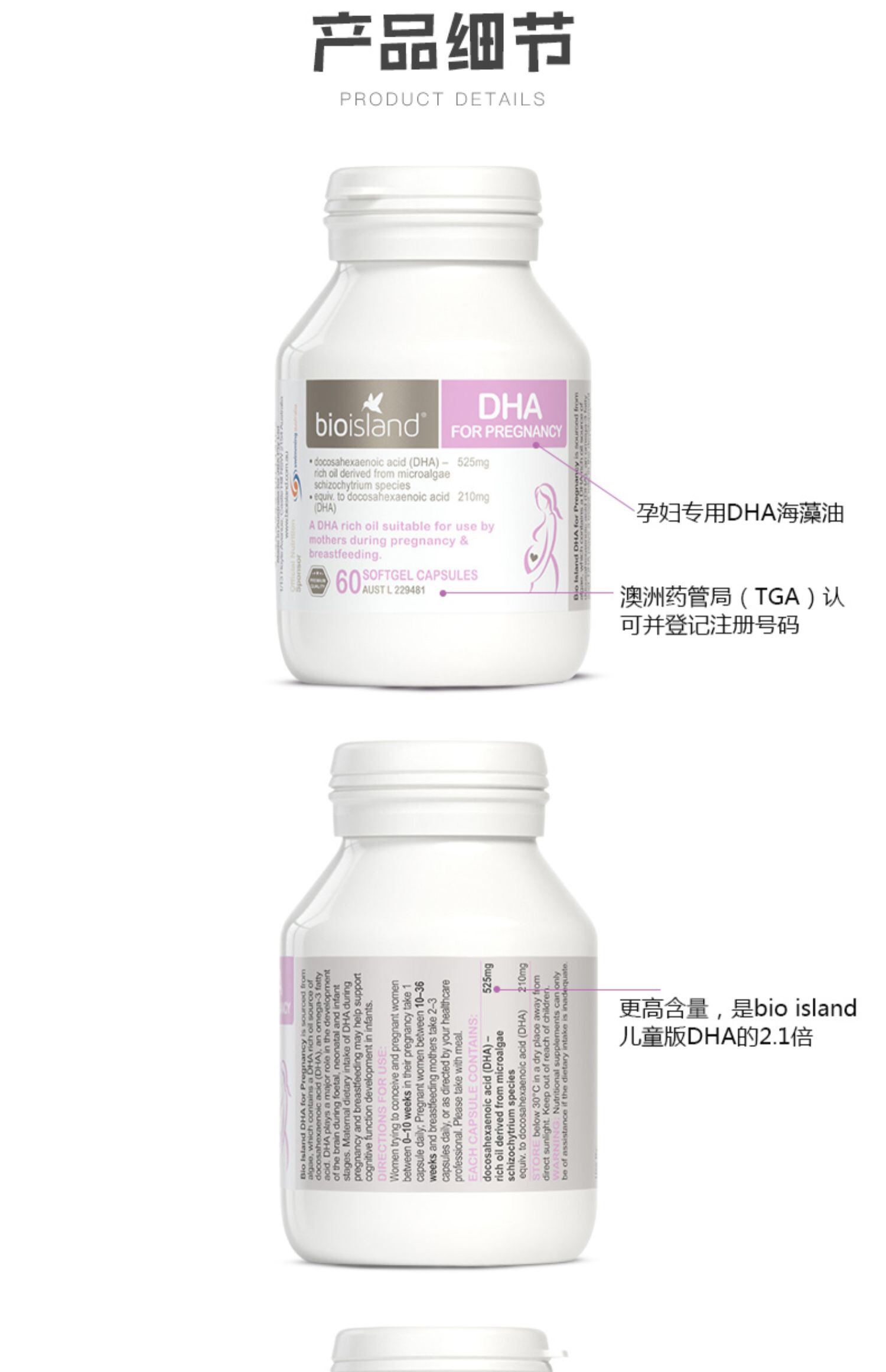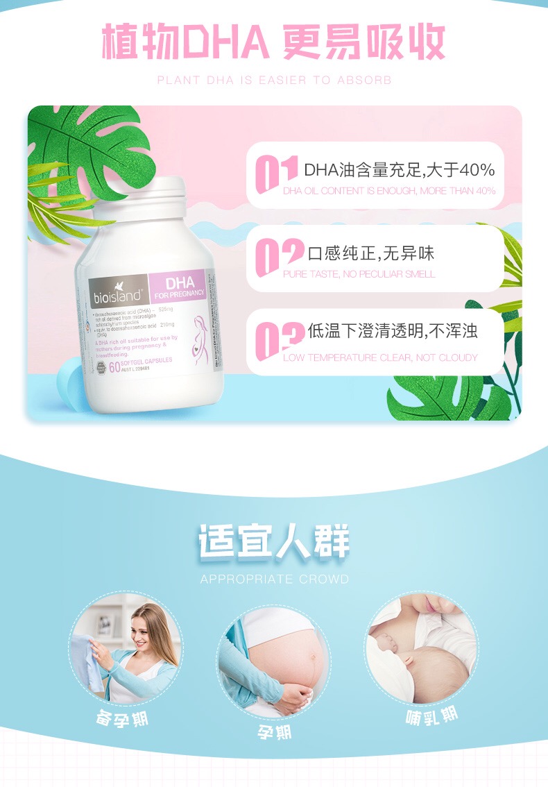 【保税区】澳洲bioisland 孕妇专用海藻油DHA 60粒