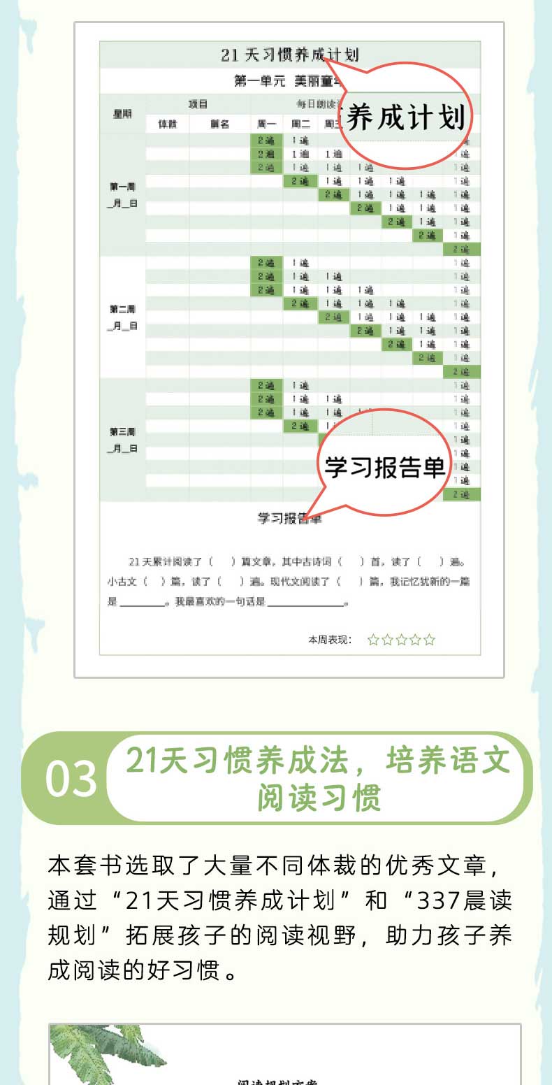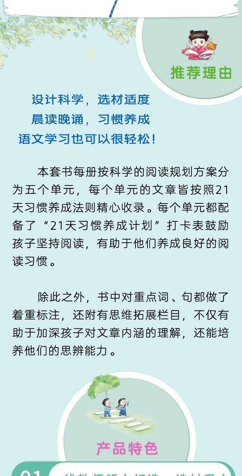 语文经典晨读全3册 小学生版 基础+提高+进阶 21天语文经典晨读美文每日一读