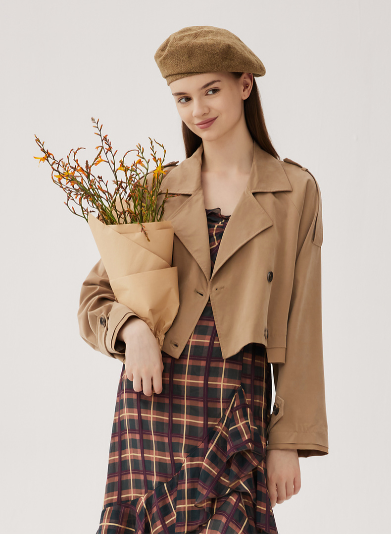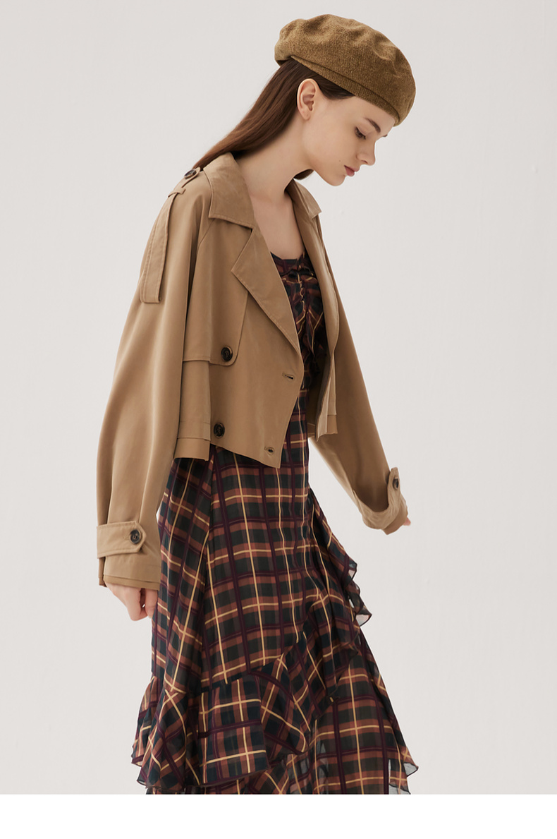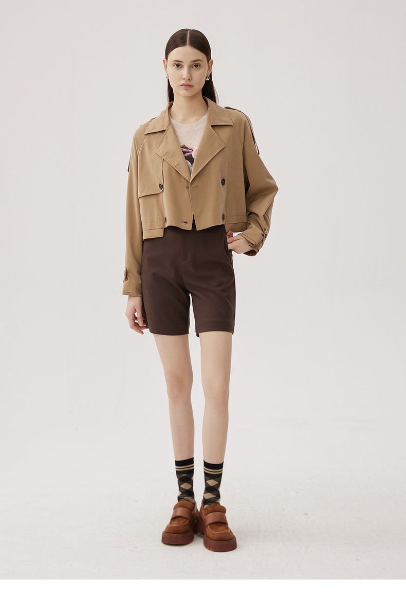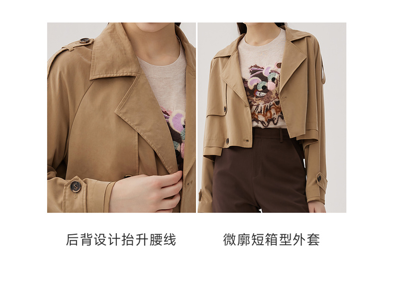 谜底短款箱型外套女士2024秋季新品通勤风西装领双排扣243MW0994