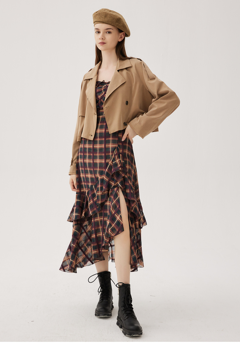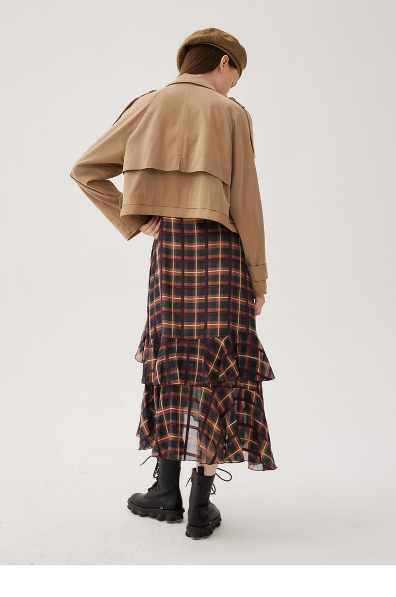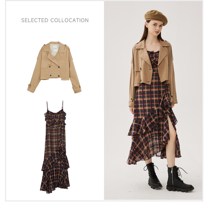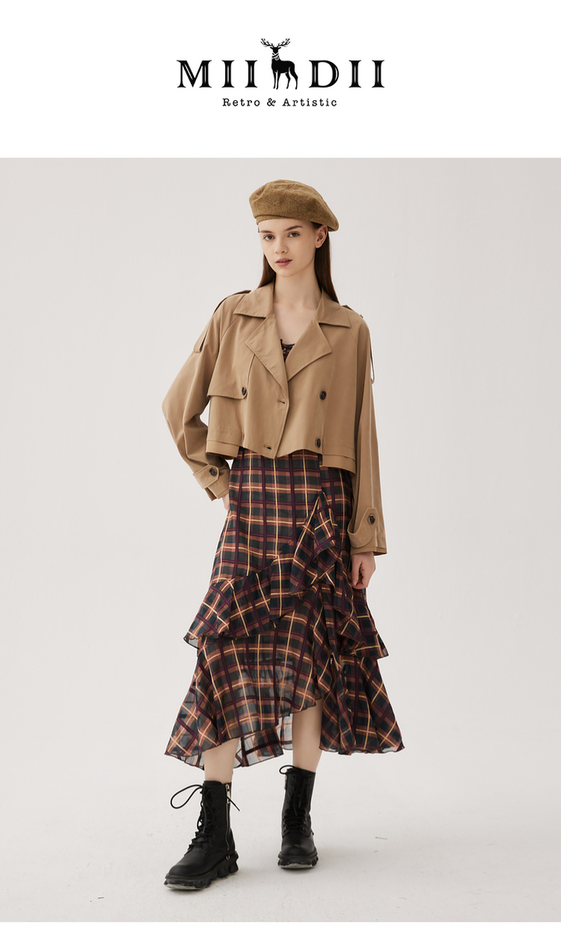 谜底短款箱型外套女士2024秋季新品通勤风西装领双排扣243MW0994