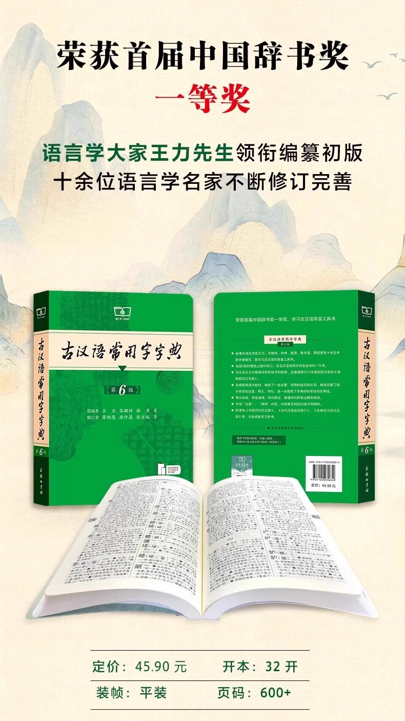 古汉语常用字字典第6版 商务印书馆第六版 王力 中小学生学习古汉语字典工具书
