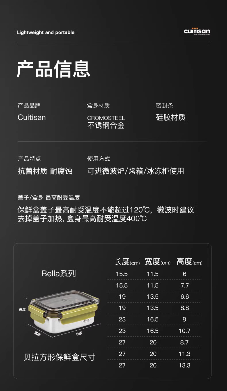 酷艺师CUITISAN贝拉方形保鲜盒饭盒5号