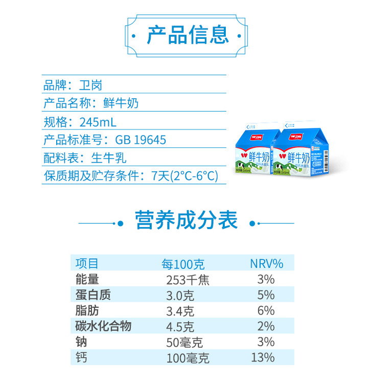 卫岗 低温鲜牛奶1.5L巴氏杀菌乳✖️2桶