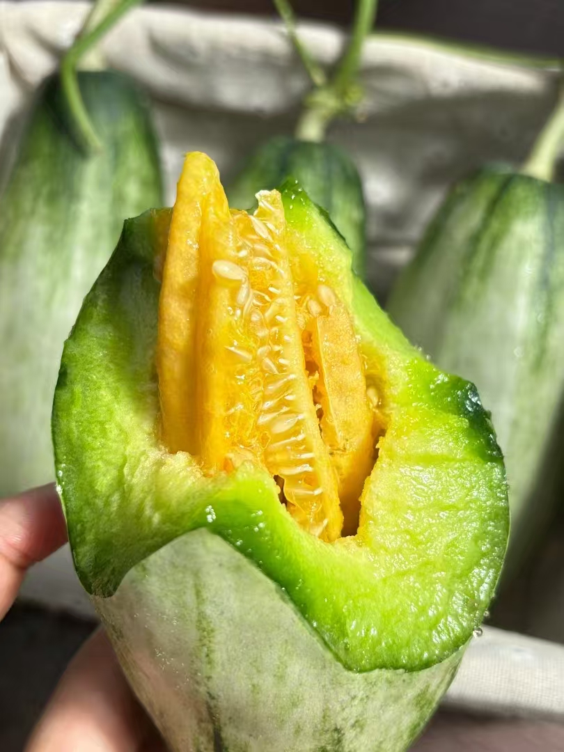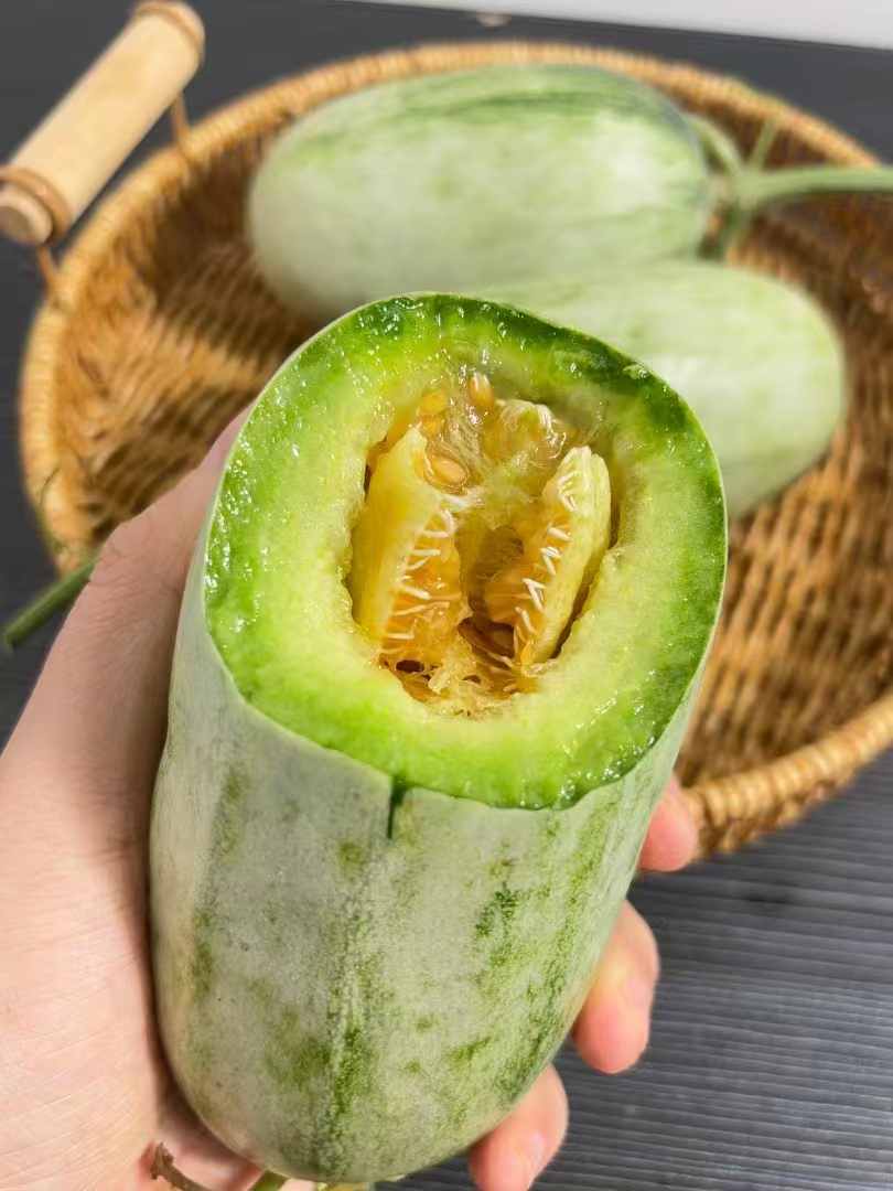 瓜皮薄如纸,瓜瓤甜如蜜,一口咬下去果肉酥脆,齿间留香~,瓜肉香酥爽脆,甜似蜂蜜多汁