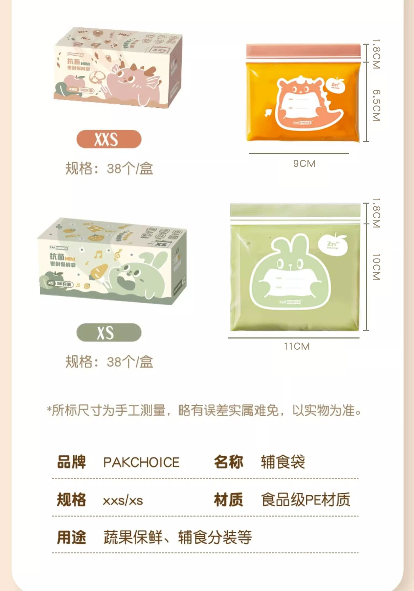 【3盒装!母婴级抗菌!可反复使用分装袋】宝宝辅食分装袋密封袋 食品级袋婴儿童专用水果零食保鲜袋 一袋一装可反复使用分装拉链袋