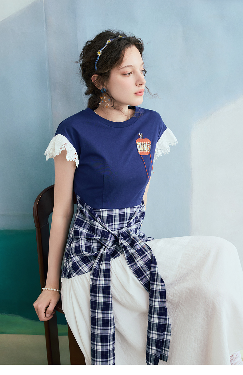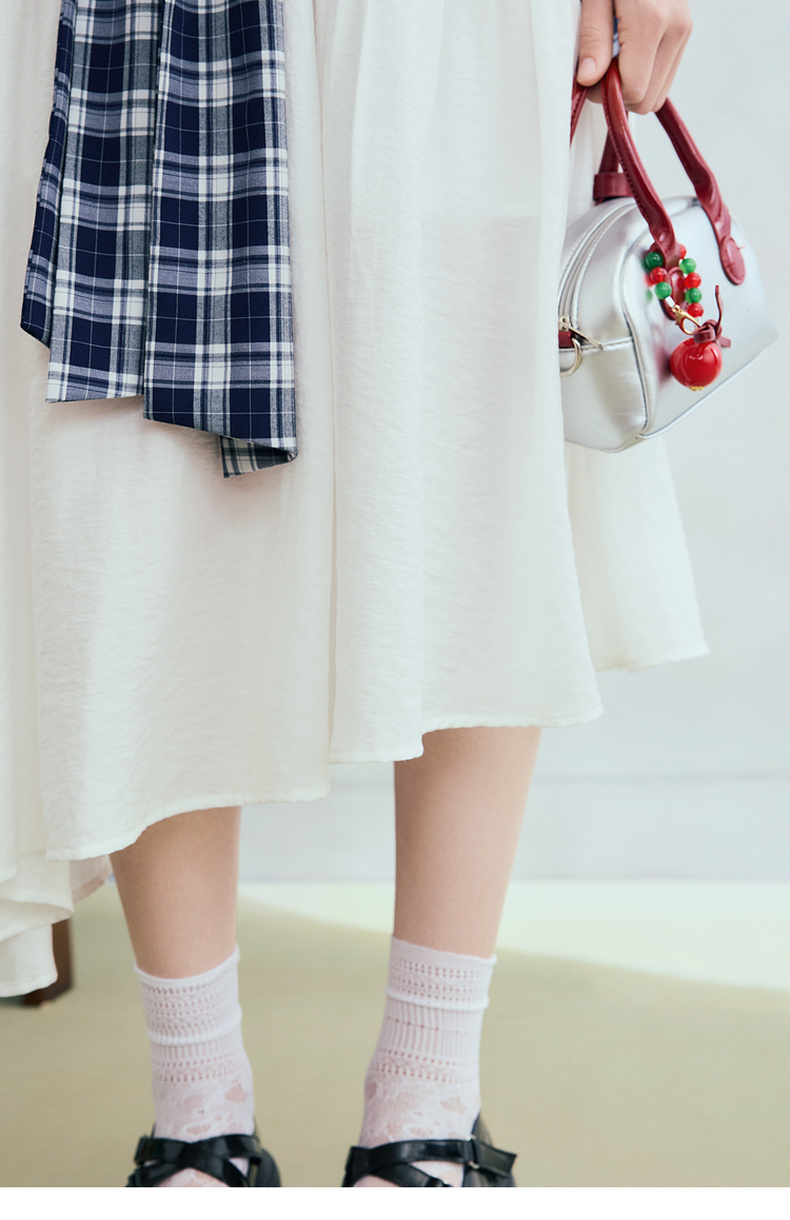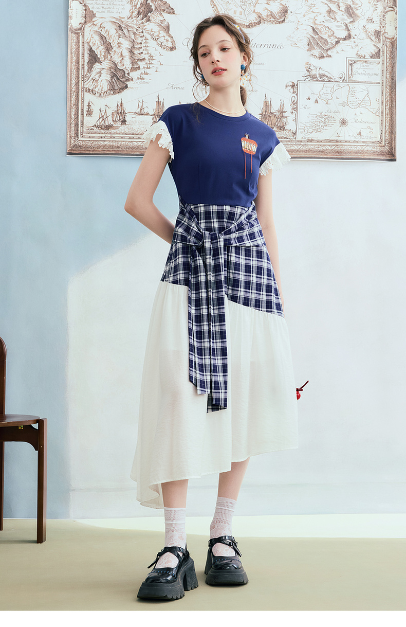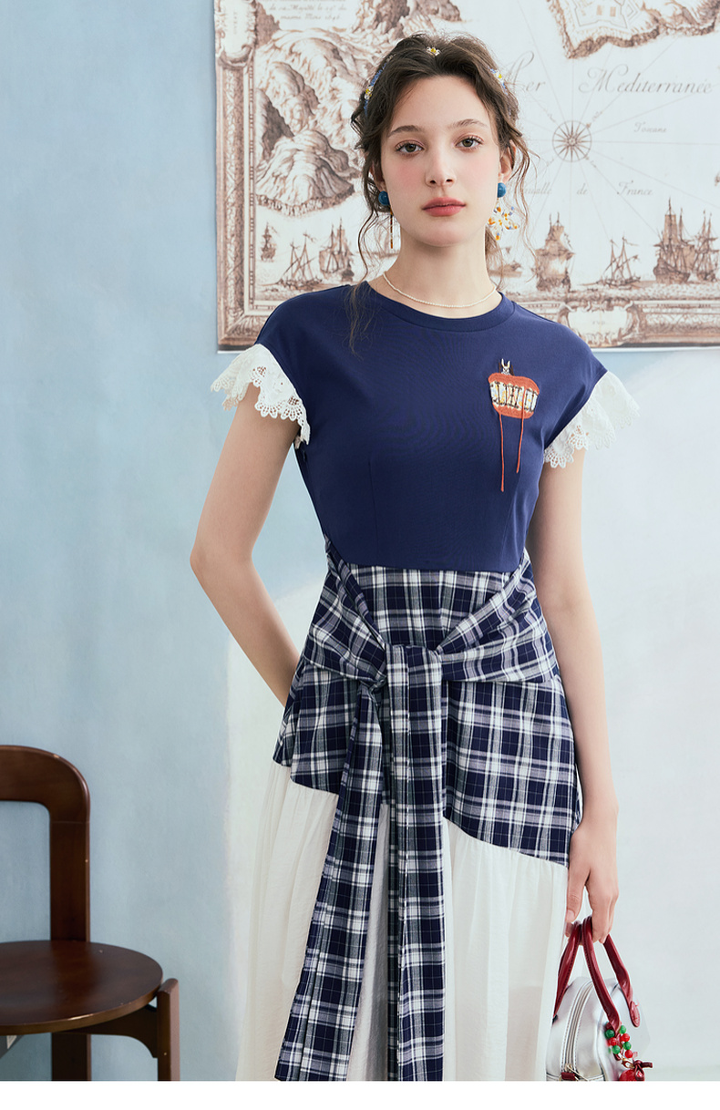 两三事【靳兆心联名款】苹果舞会2025复古格子布拼接假两件连衣裙