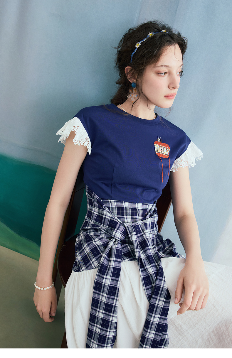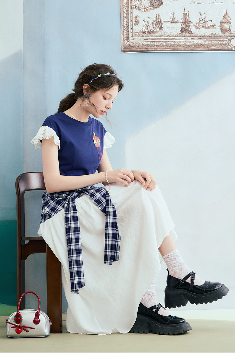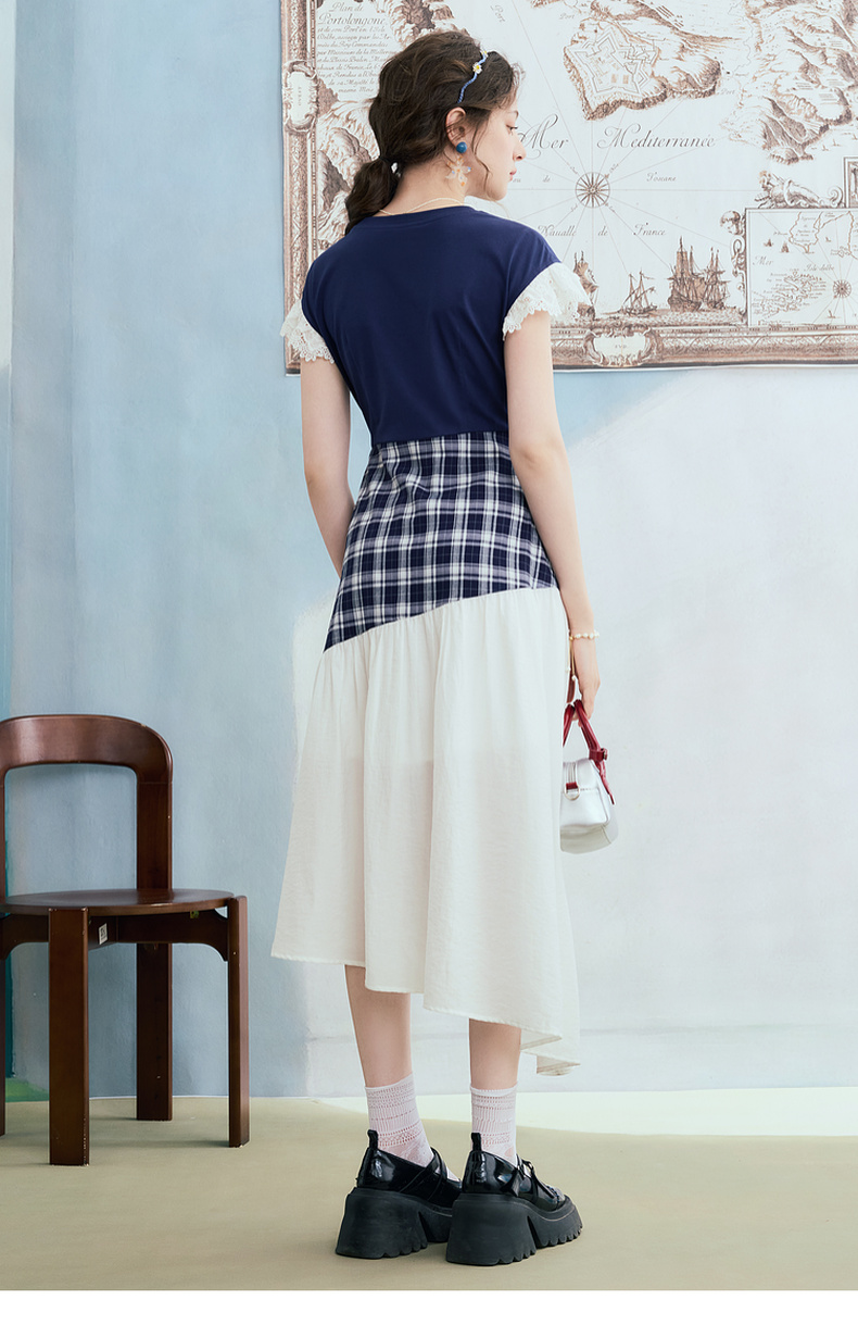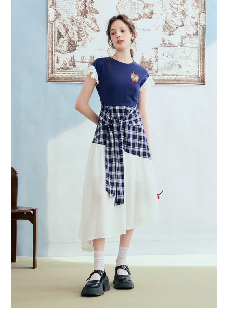 两三事【靳兆心联名款】苹果舞会2025复古格子布拼接假两件连衣裙