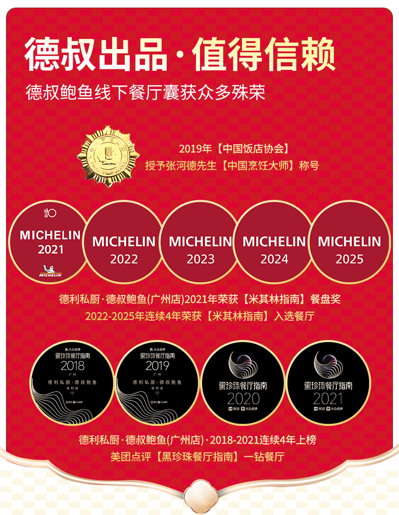 - 德叔鲍鱼官方商城,客服热线:4006111977 德叔鲍鱼创始于1988年,专注鲍鱼研究34年。线下粤菜餐厅,主打溏心干鲍,荣获米其林和黑珍珠等称号。线上全平台推广,本商城提供微信端的便捷购买。
