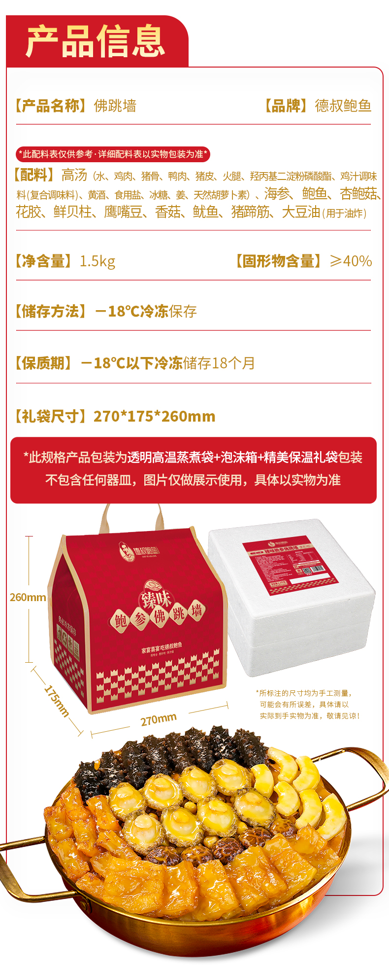 【德叔鲍鱼】德叔鲍鱼臻味鲍参佛跳墙3斤装·8参8鲍·鲜贝柱版【冷冻储存】