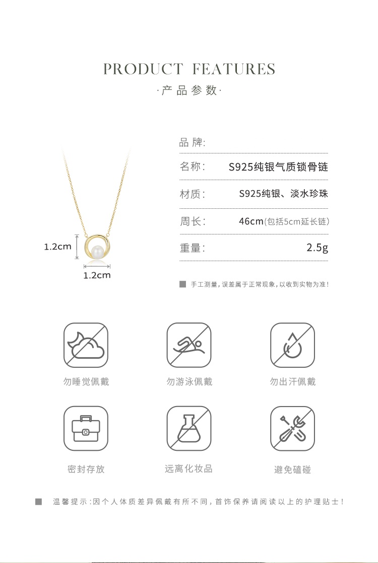 Oflye潮流饰品 天然珍珠纯银项链女新款爆款轻奢小众高级感配饰
