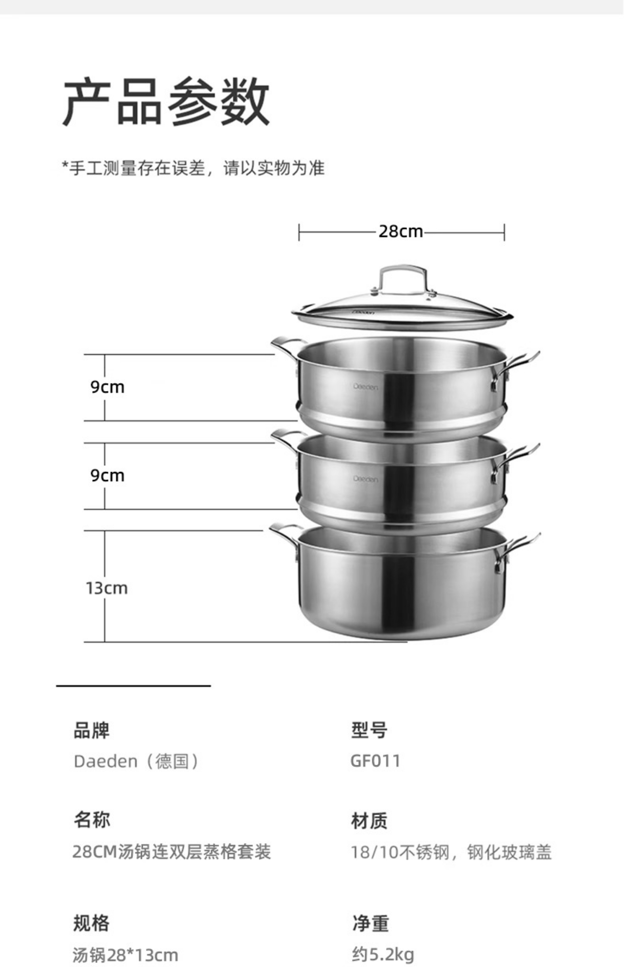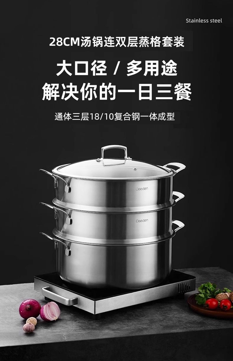 DP055 戴德汤锅蒸锅连双层蒸格套装32cmGF011戴德汤锅连双层蒸格套装28cm
