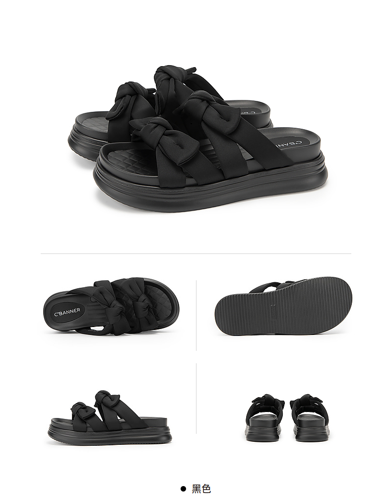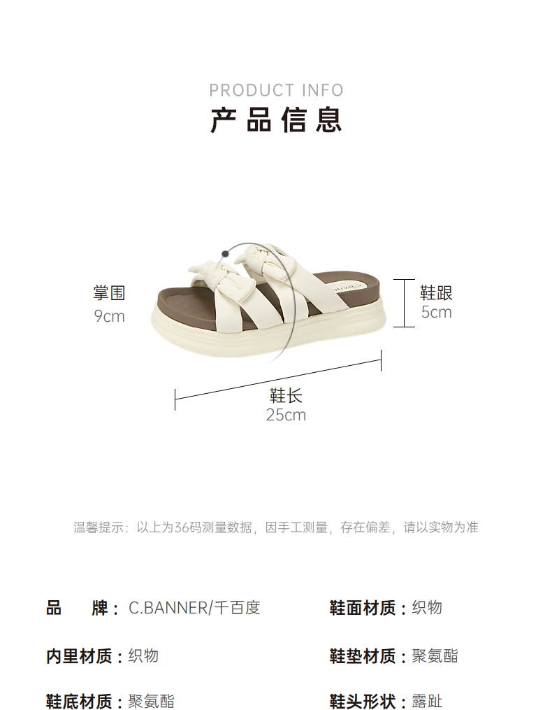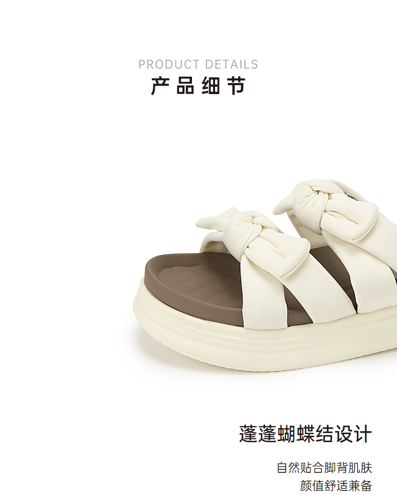 千百度蝴蝶结厚底踩屎感可外穿凉拖鞋女款夏季休闲半拖鞋A24381011