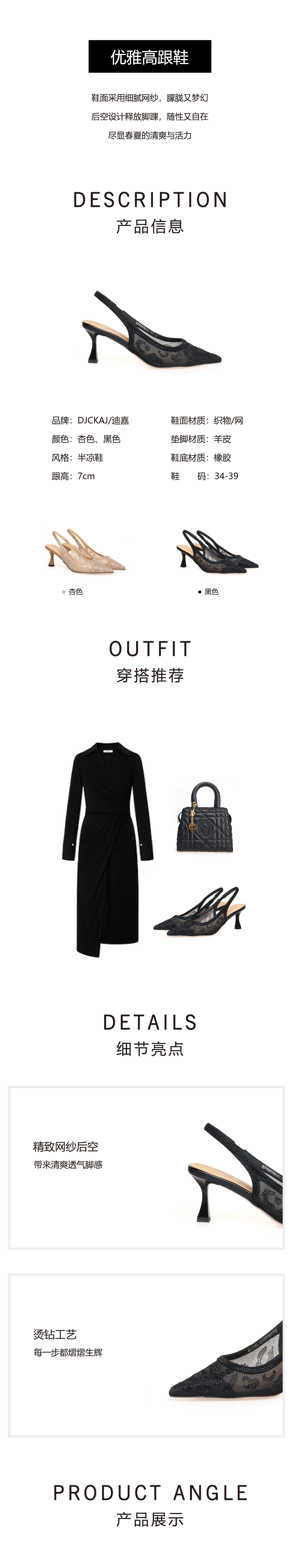 豪麟名鞋奥莱迪嘉女鞋半凉鞋织物DJYYO51WB202杏色 原价1660元