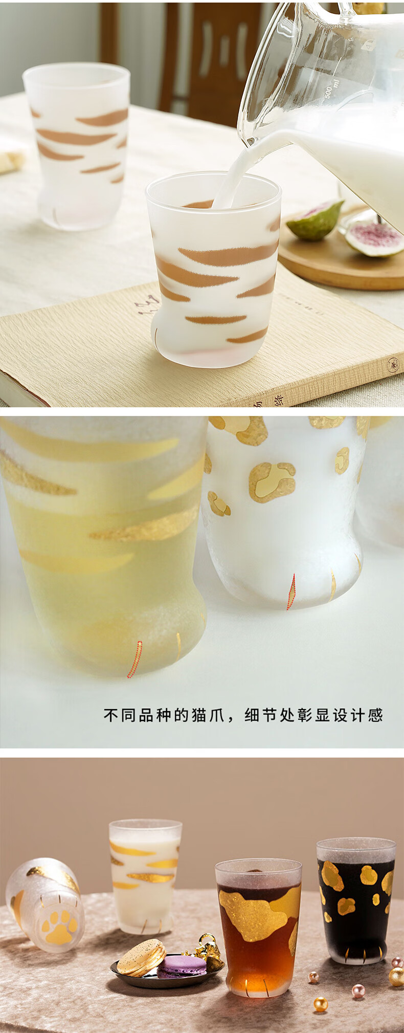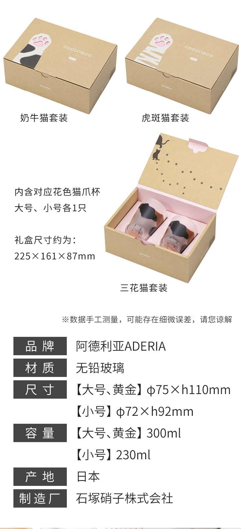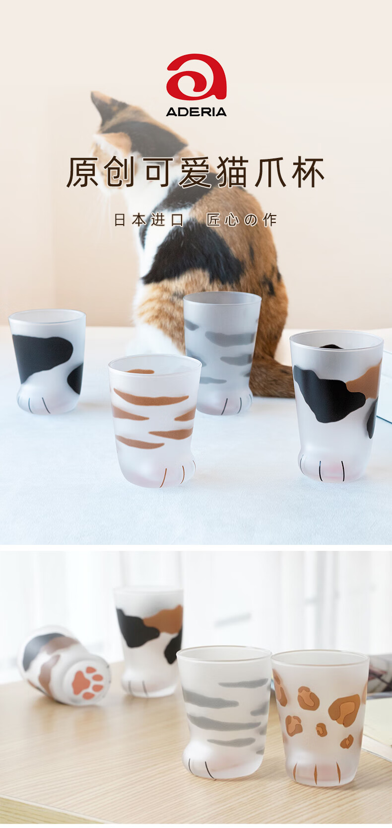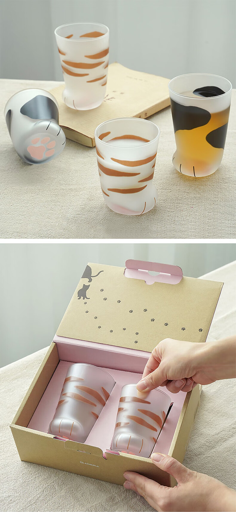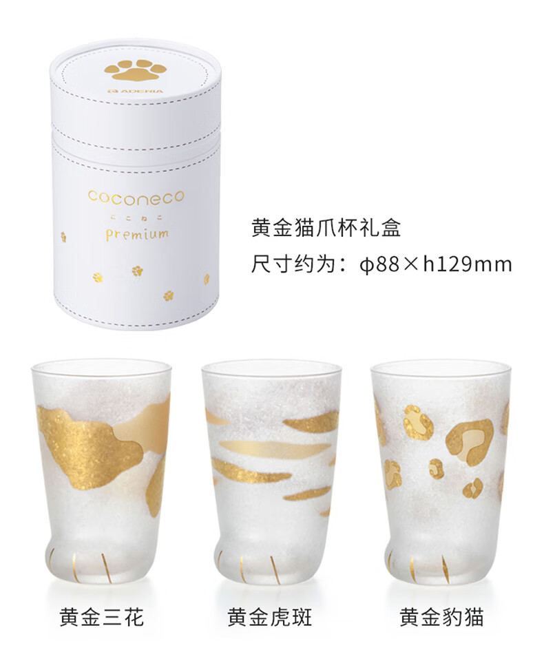 ADERIA猫爪杯2只玻璃杯水杯日本进口男女个性礼物情侣杯虎斑猫300+230ml