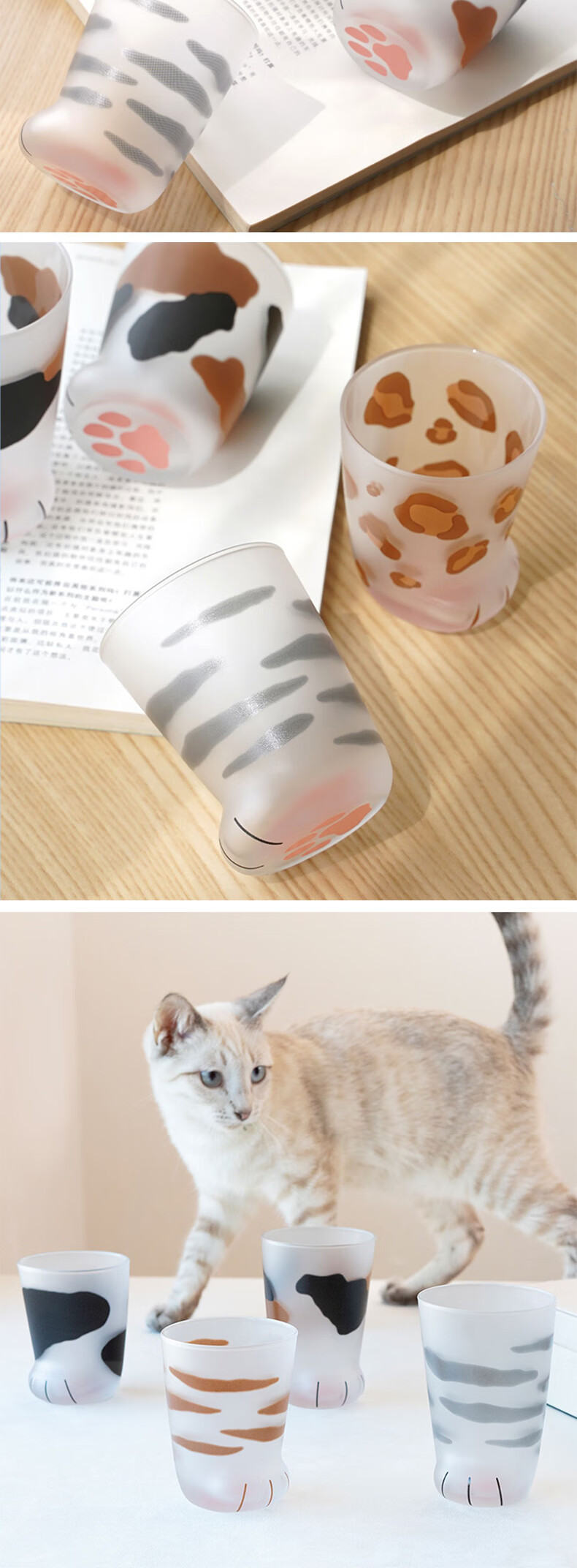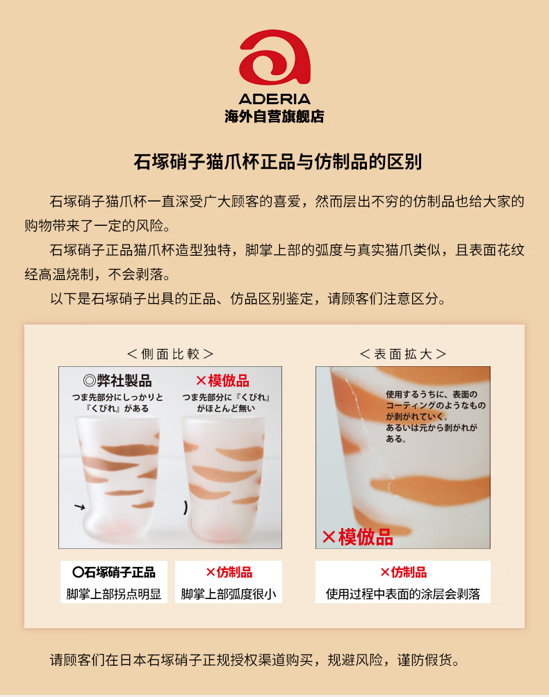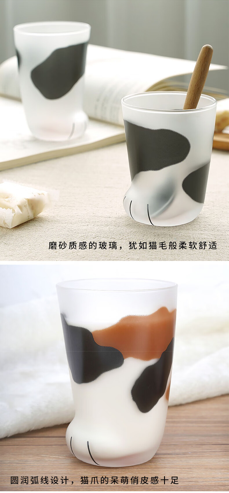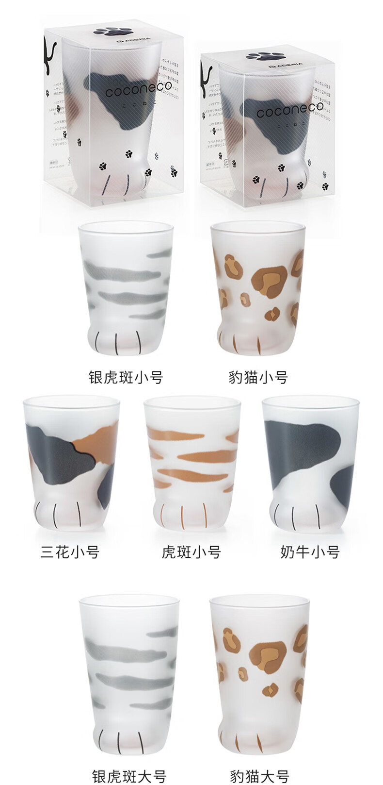 ADERIA猫爪杯2只玻璃杯水杯日本进口男女个性礼物情侣杯虎斑猫300+230ml