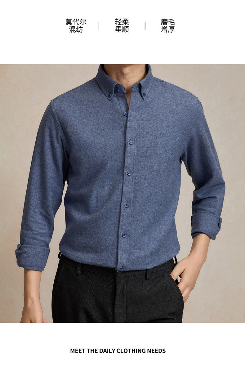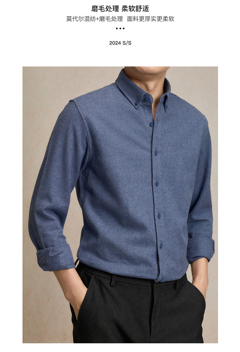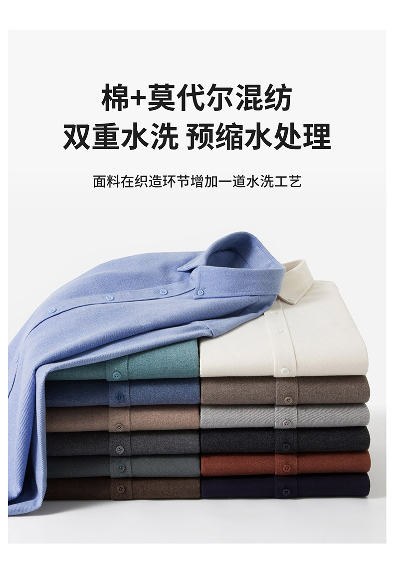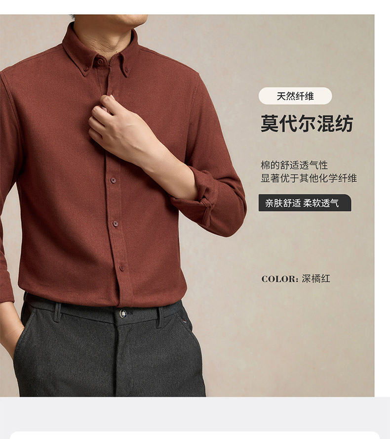 罗蒙秋冬长袖衬衫男士莫代尔棉吸湿透气柔软舒适日常百搭长袖衬衣