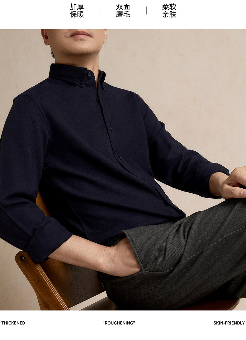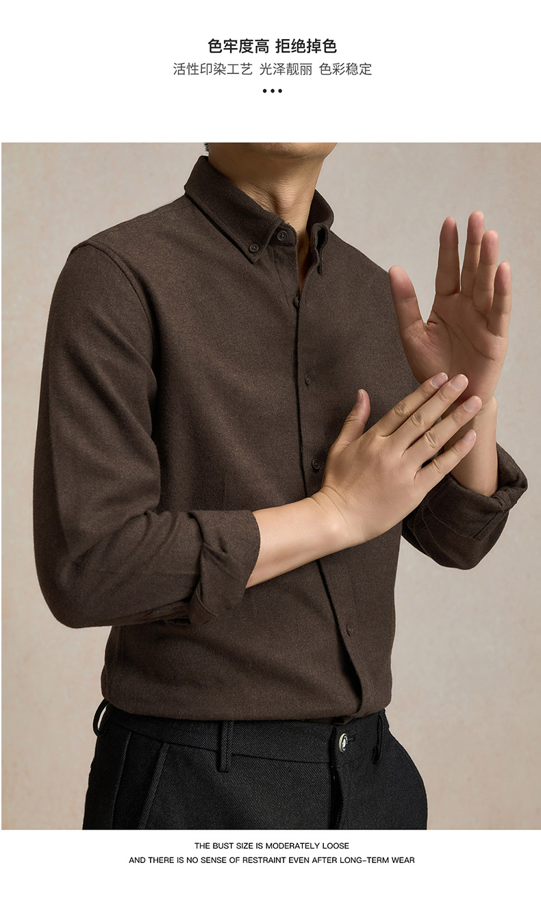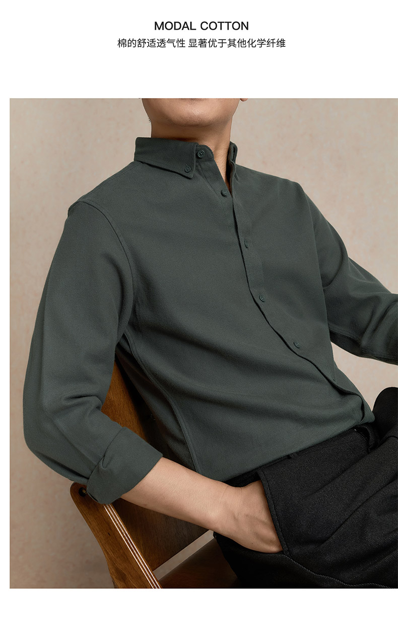 罗蒙秋冬长袖衬衫男士莫代尔棉吸湿透气柔软舒适日常百搭长袖衬衣