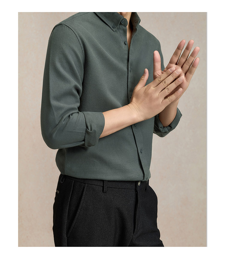 【莱赛尔弹力面料】罗蒙春秋男士经典翻领纯色长袖衬衫舒适百搭通勤上班职业男衬衣