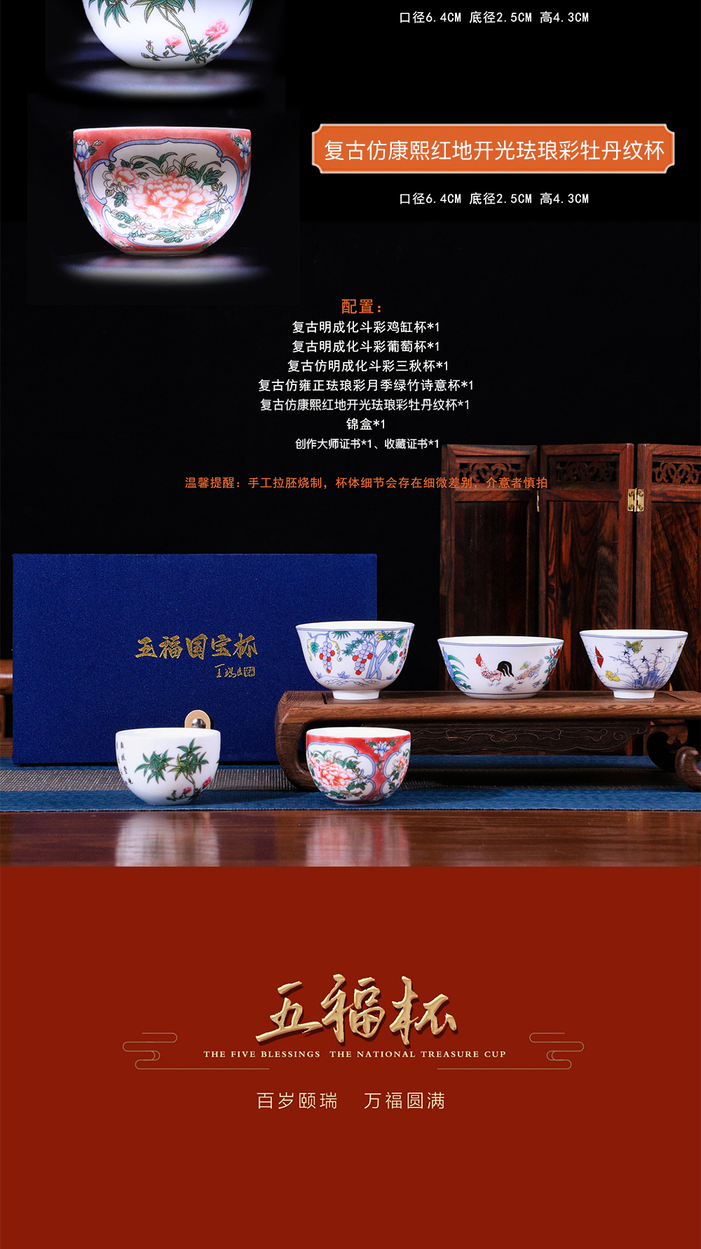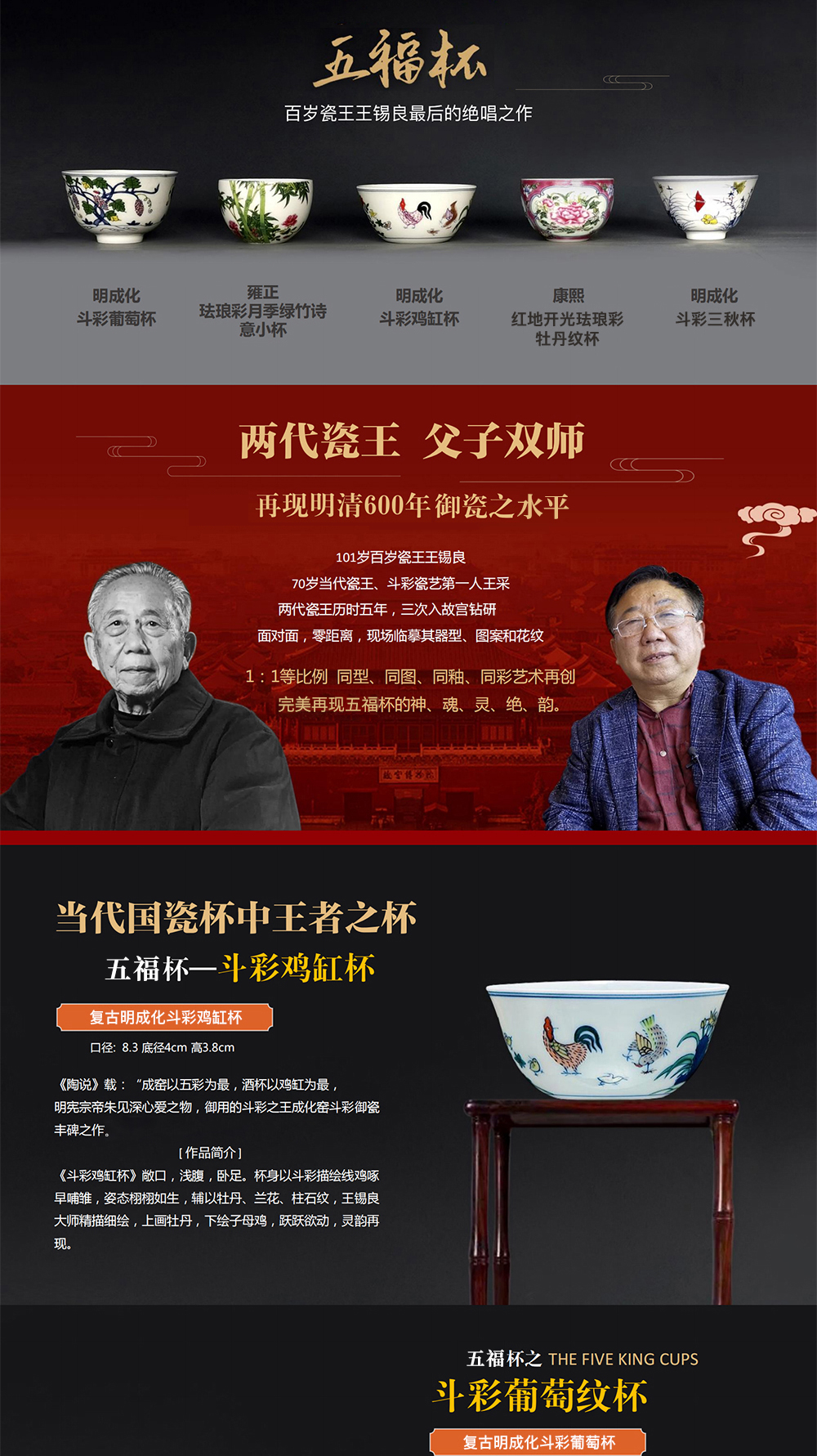 百岁瓷王、瓷坛泰斗、当代陶瓷王锡良老先生的绝唱——五福杯
