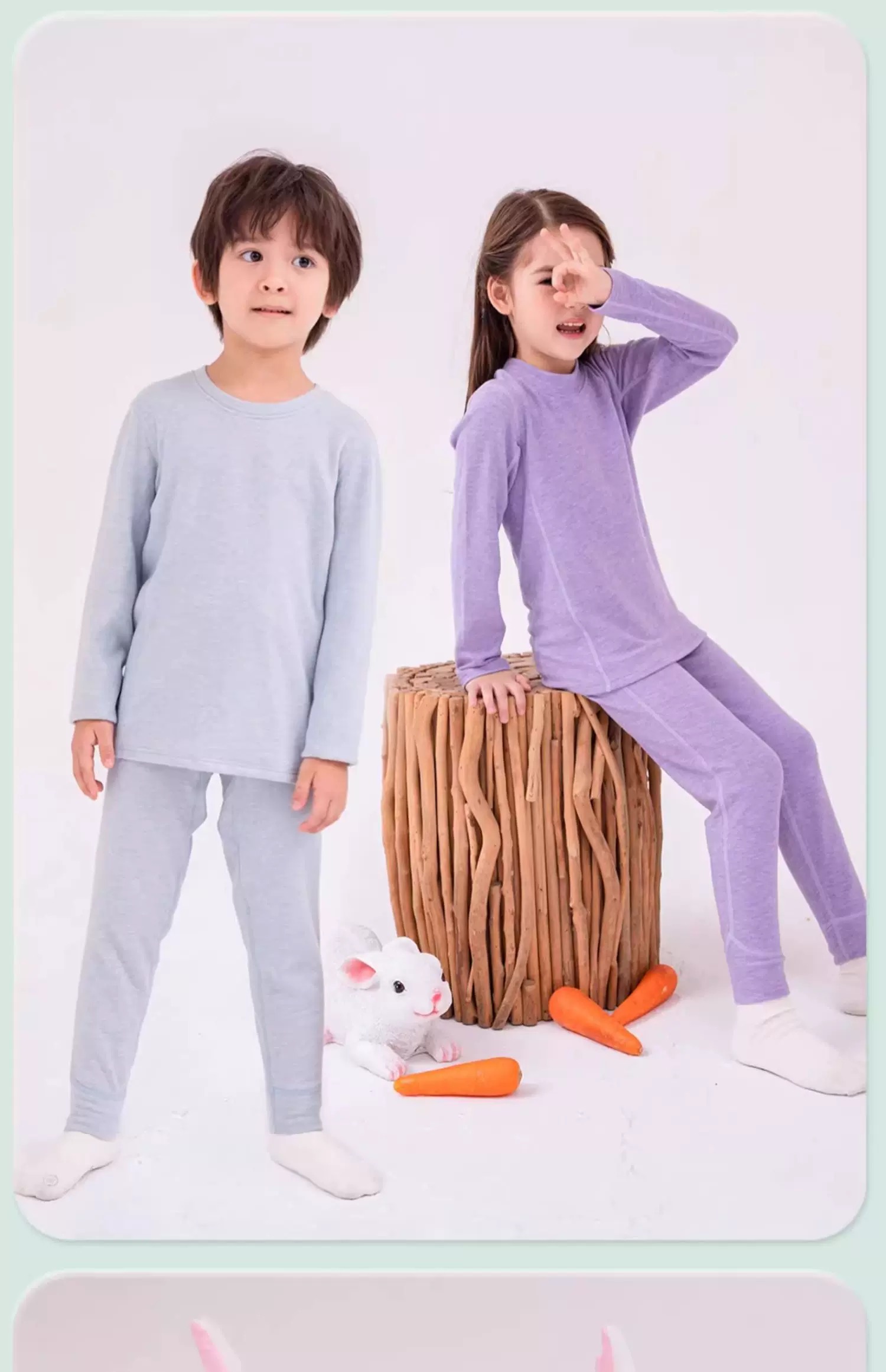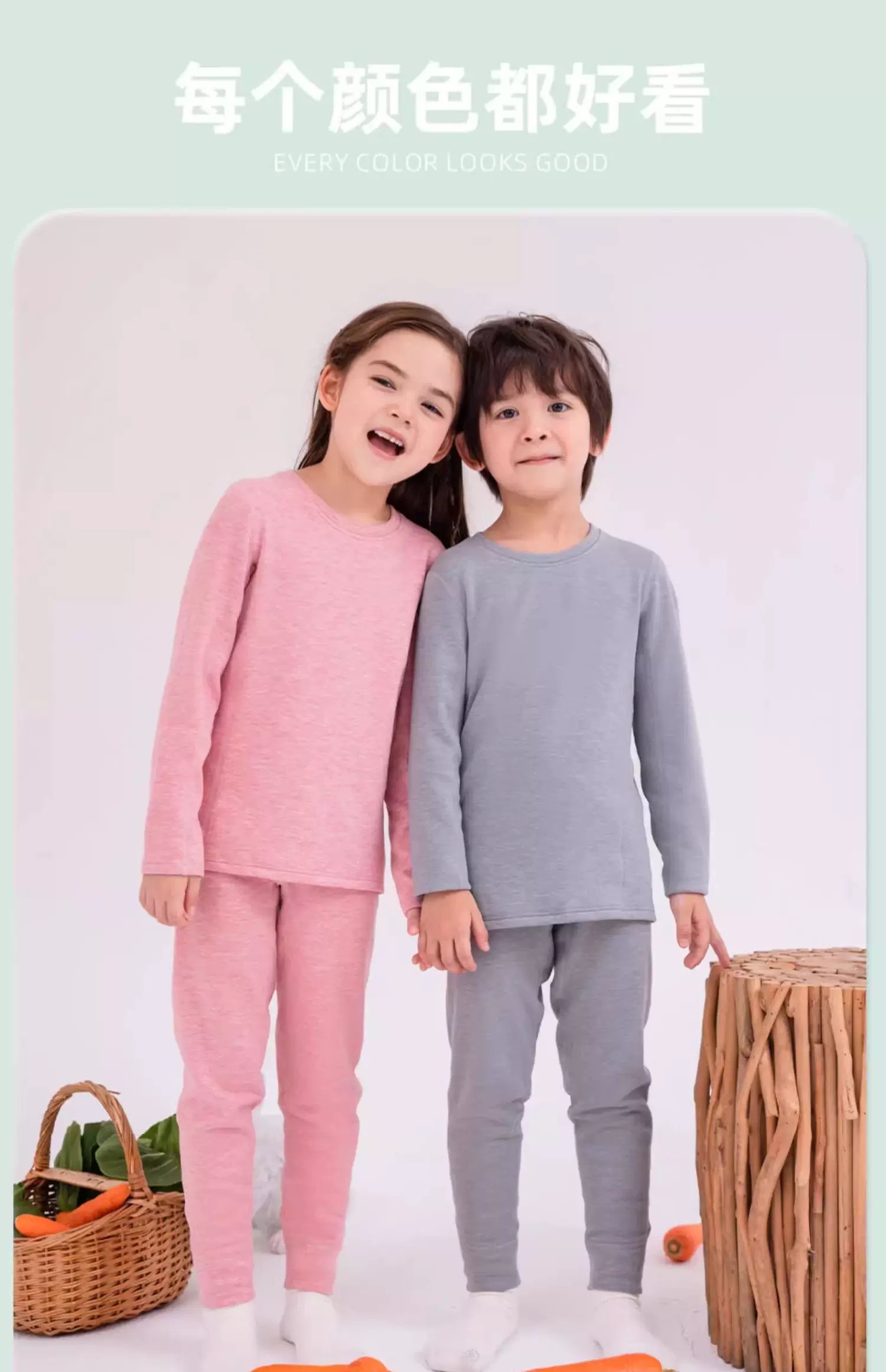 【110-180码】青少年保暖衣内衣套装兔绒蚕丝男女中大童女秋衣秋裤棉毛衫【FB23732/FB23731】