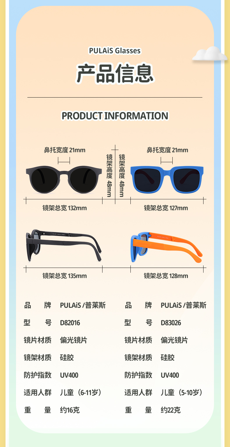 普莱斯儿童太阳镜 D82016/D83026 小巧便携 随时出发 UV紫外线防护跟刺眼阳光说“拜拜” 8色可选