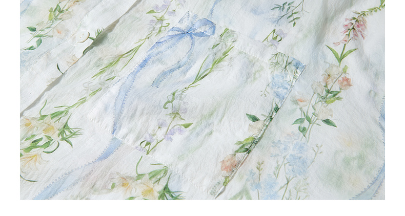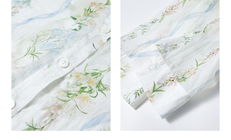 两三事月移花影夏季新款复古印花绑带长袖衬衫女宽松衬衣