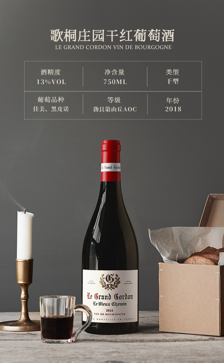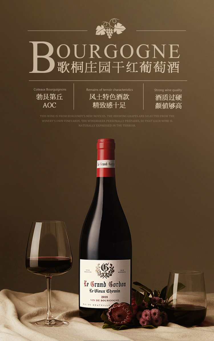 【勃艮第山丘AOC】 歌桐庄园干红葡萄酒 法国原装进口 13%vol