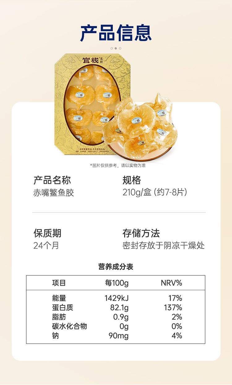 【限时特惠】官栈7A赤嘴鱼胶210g深海干花胶赤嘴鳘鱼胶高蛋白女性营养滋补送礼干花胶礼盒