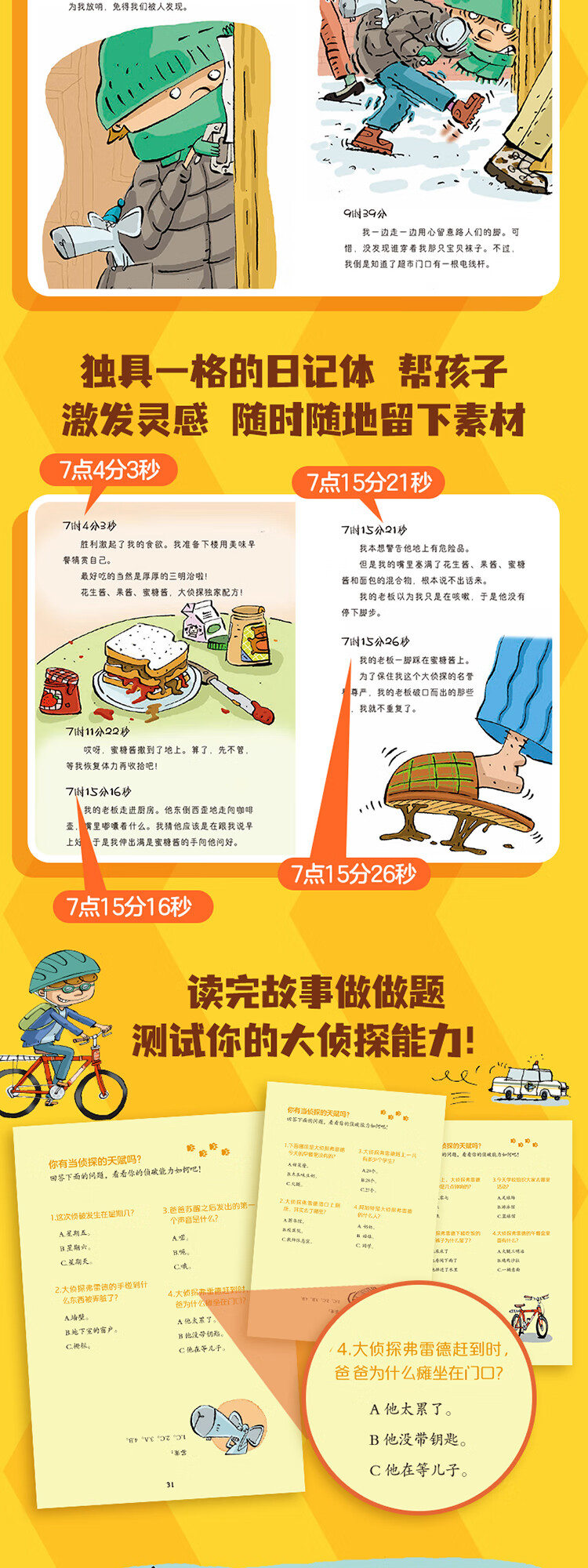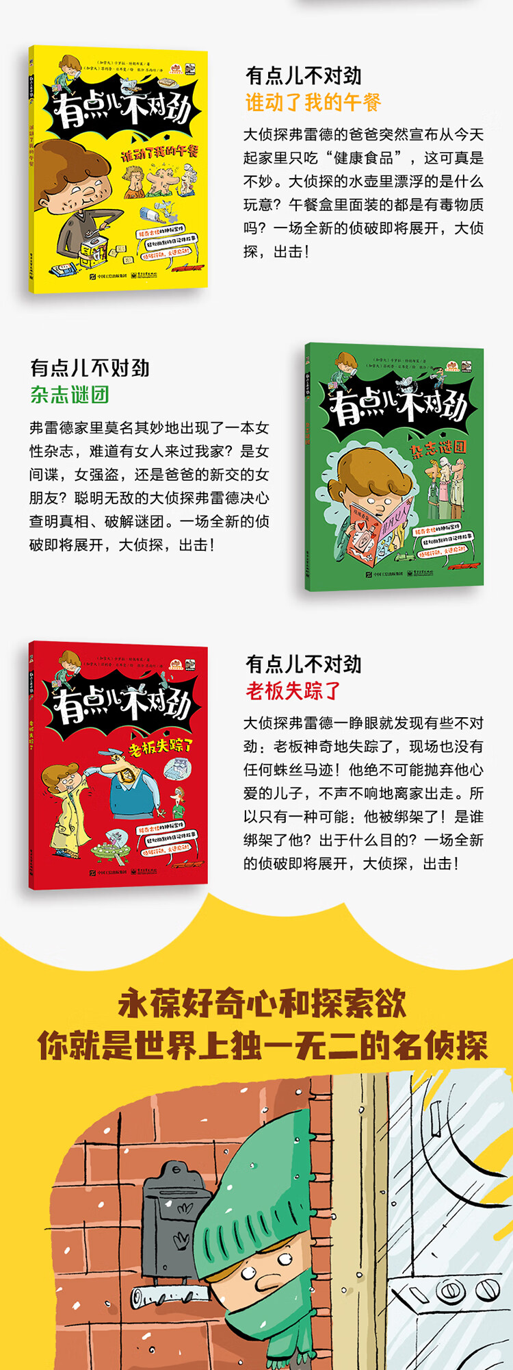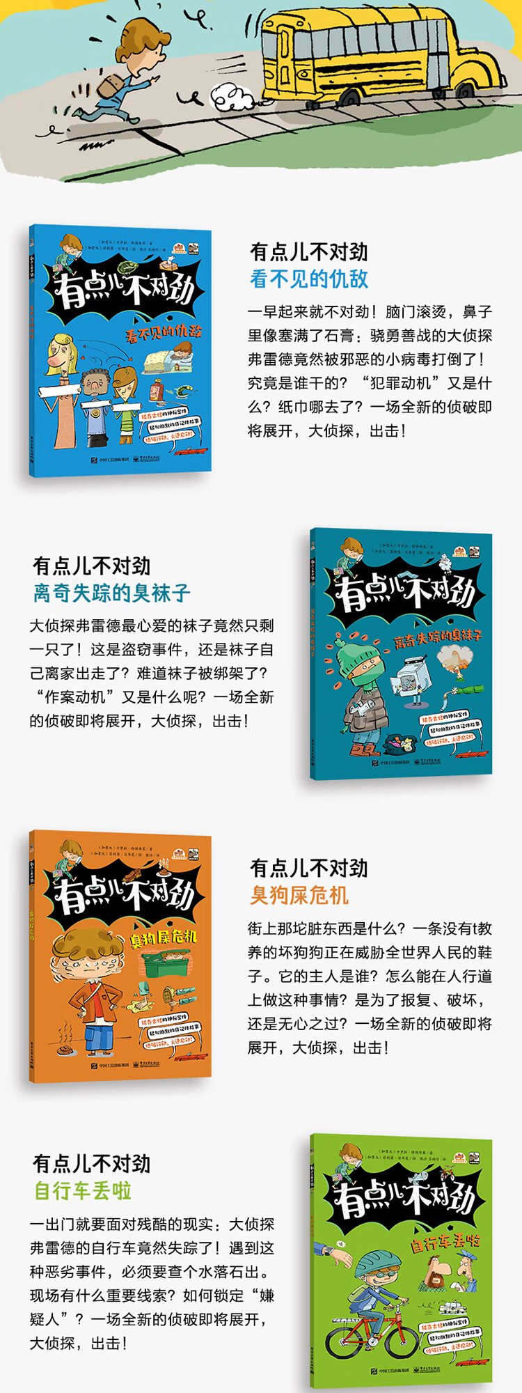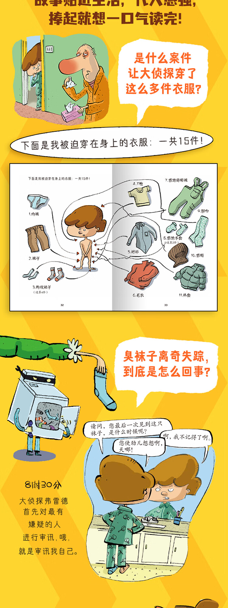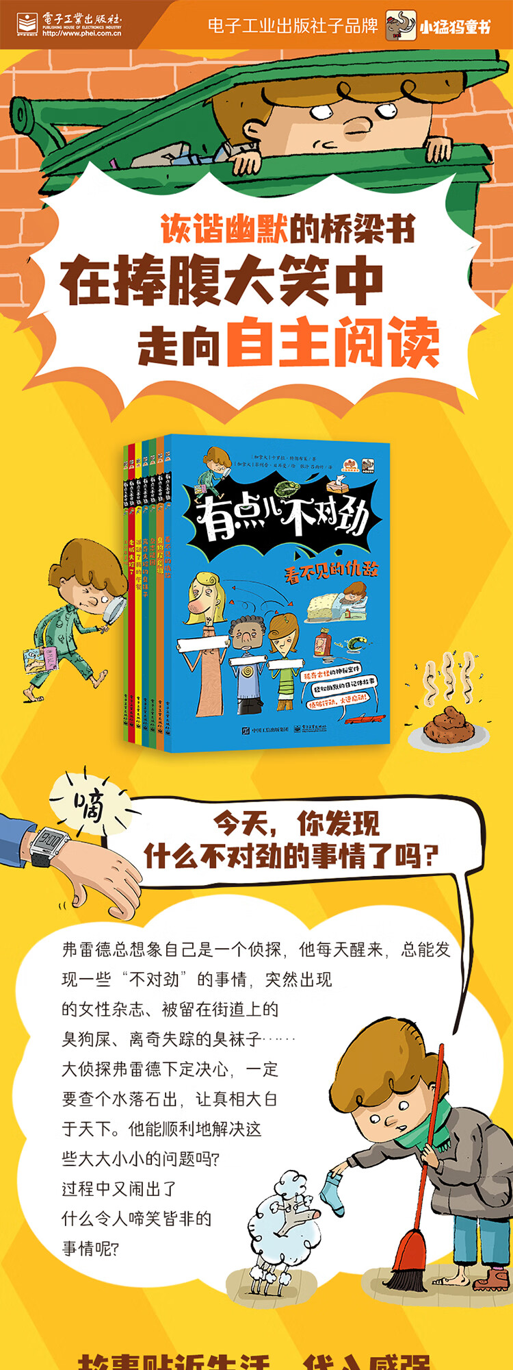 本书是一套儿童文学书籍。弗雷德·普莱总想象自己是一个侦探,他的"老板”是他的爸爸,是爸爸教会了他"调查”这件事儿,虽然,爸爸并不总能知道问题的正确答案。弗雷德·普莱每天醒来,总能发现一些"不对劲”的事情,突然出现的女性杂志、被留在街道上的臭狗屎、离奇失踪的臭袜子……大侦探弗雷德下定决心,一定要查个水落石出,让真相大白于天下。他能顺利地解决这些大大小小的问题吗?过程中又闹出了什么令人啼笑皆非的事情呢?