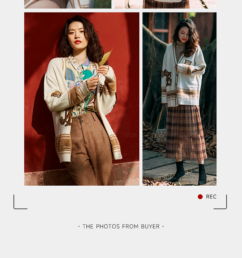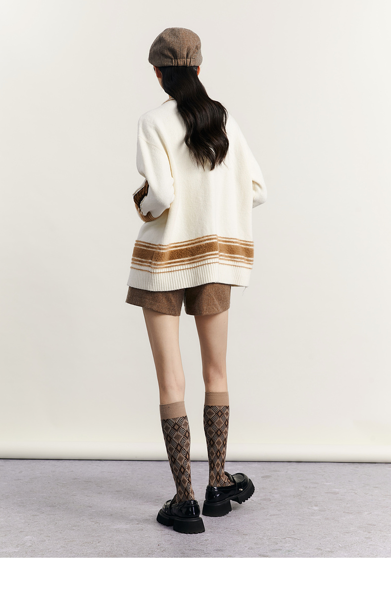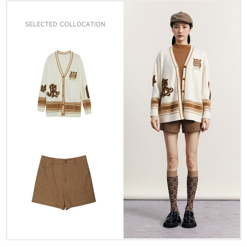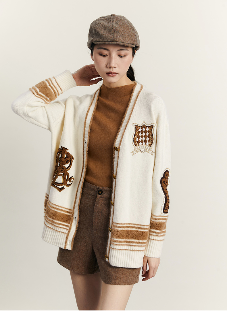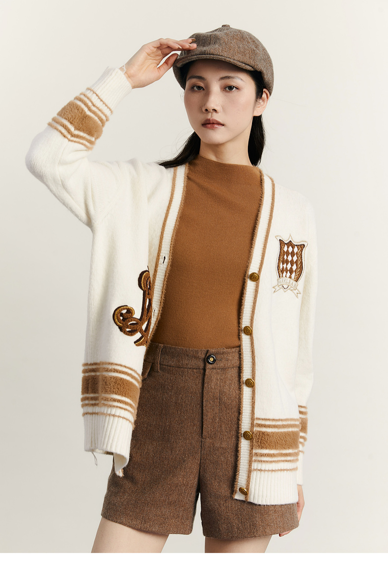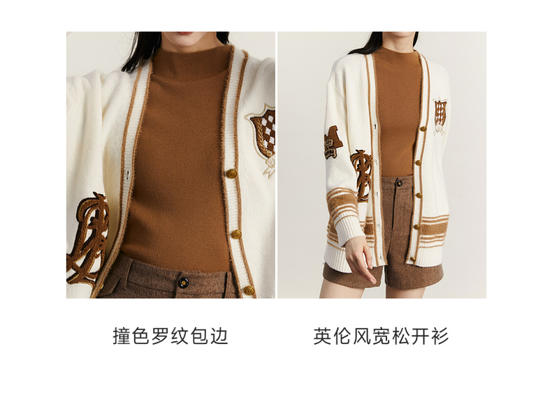 谜底针织开衫女2023冬新品复古文艺学院风中长款针织衫234MZ1880