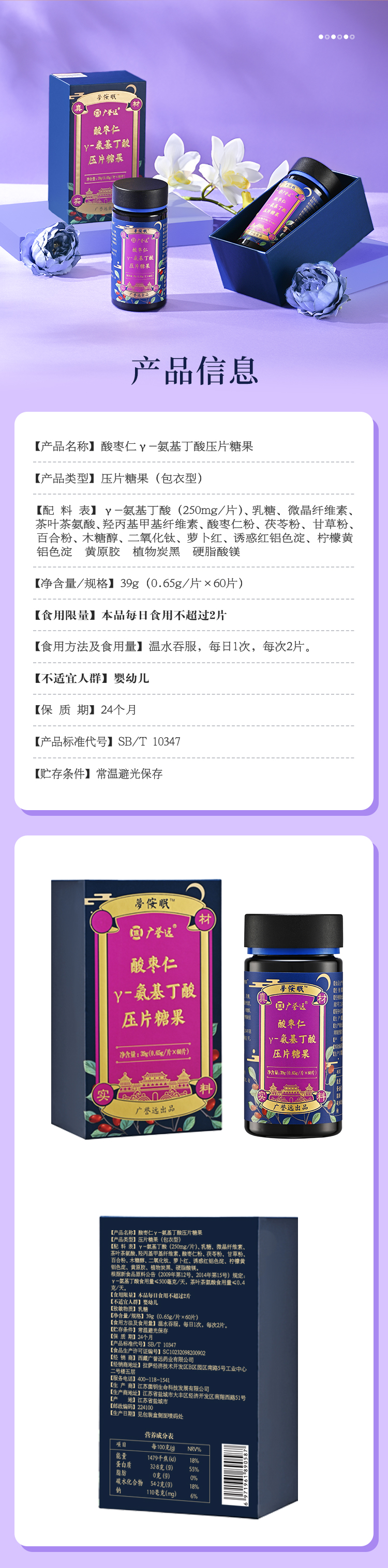 【2盒】夢侒眠™酸枣仁γ-氨基丁酸压片糖果39g(0.65g/片×60片)