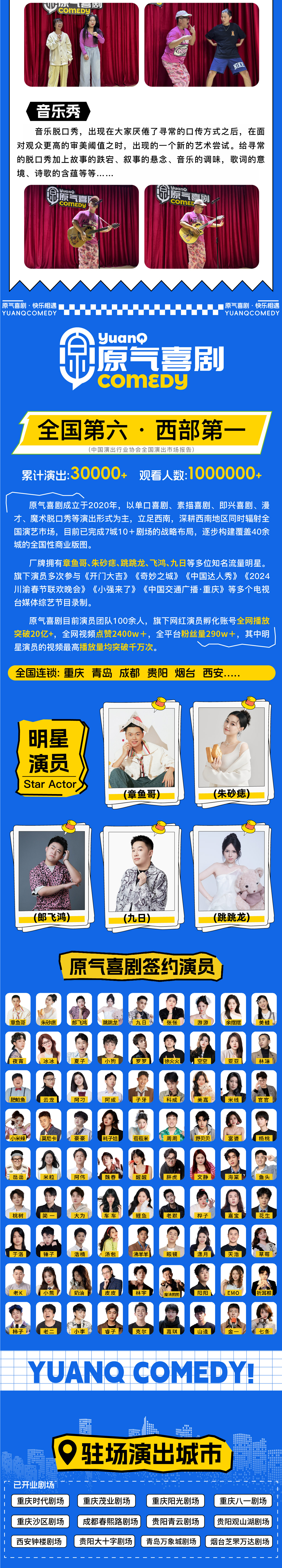 - 提供脱口秀、新喜剧、即兴喜剧、相声、沉浸式戏剧、儿童剧演出和新趣活动体验。