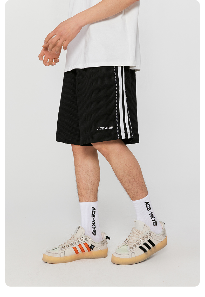 YKYB黄子韬运动短裤潮流2025夏季新款直筒裤子宽松条纹撞色五分裤
