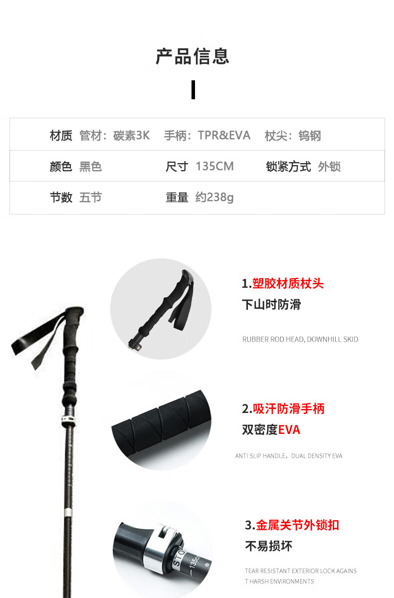 【小家电】趣游帮超轻可折叠碳素登山杖 Q613 HF