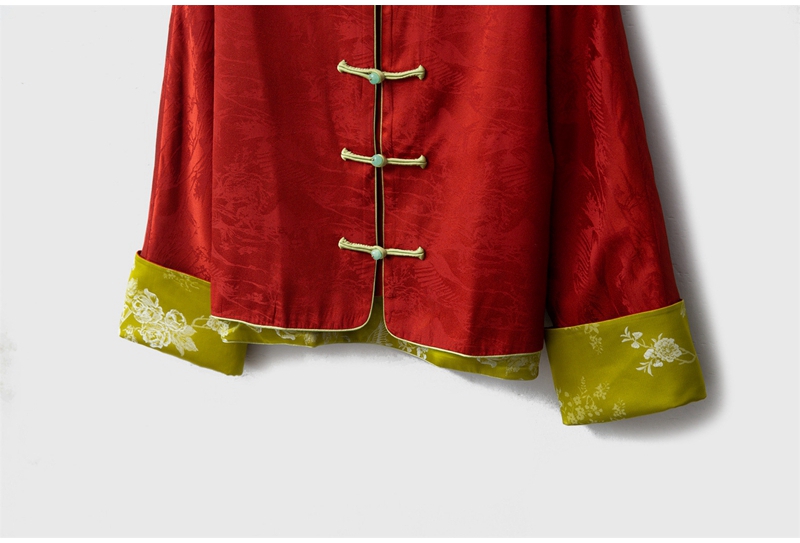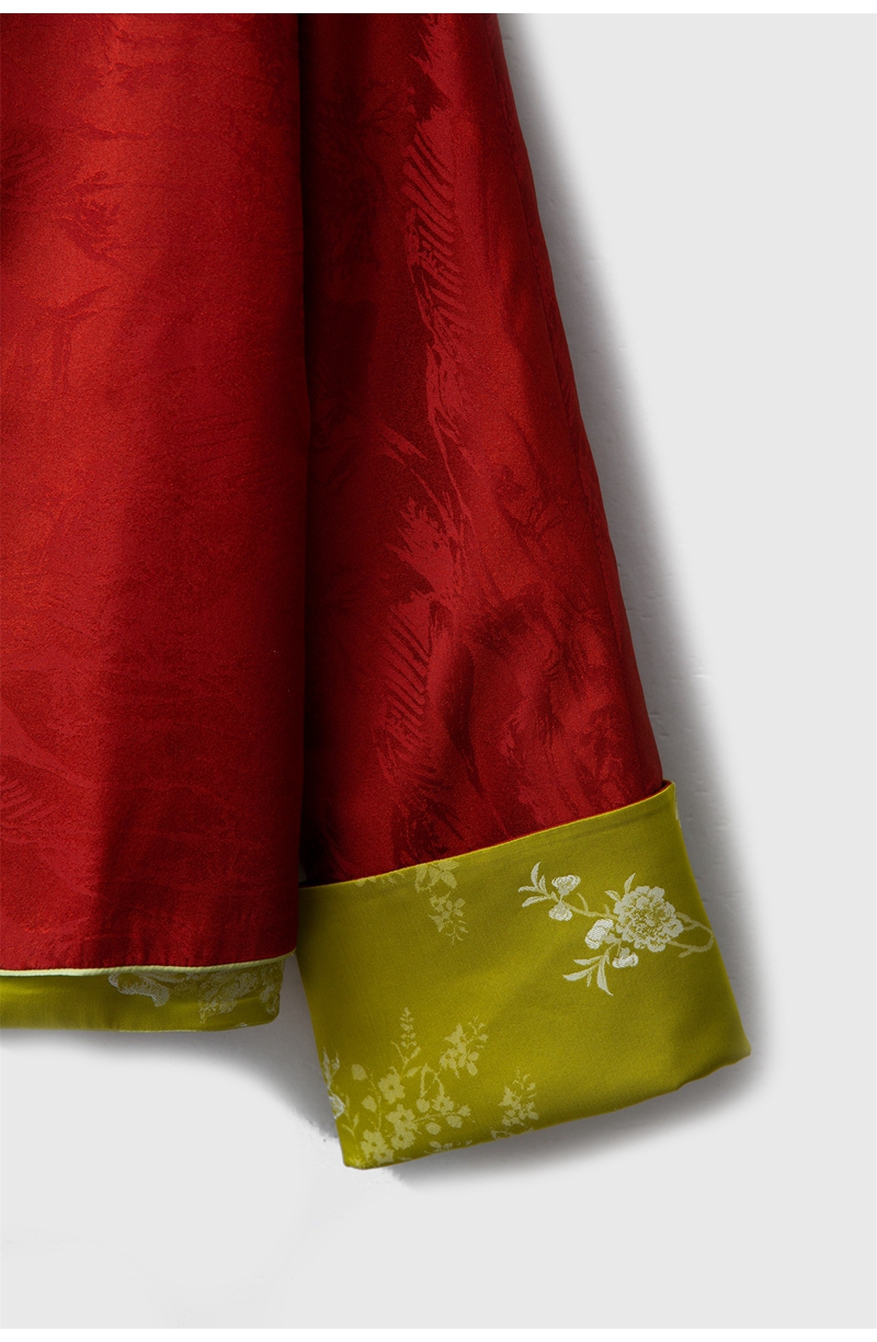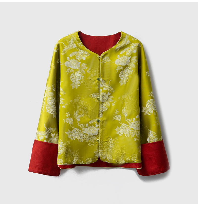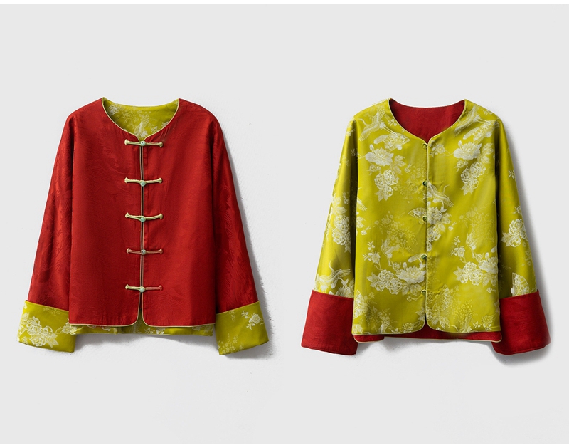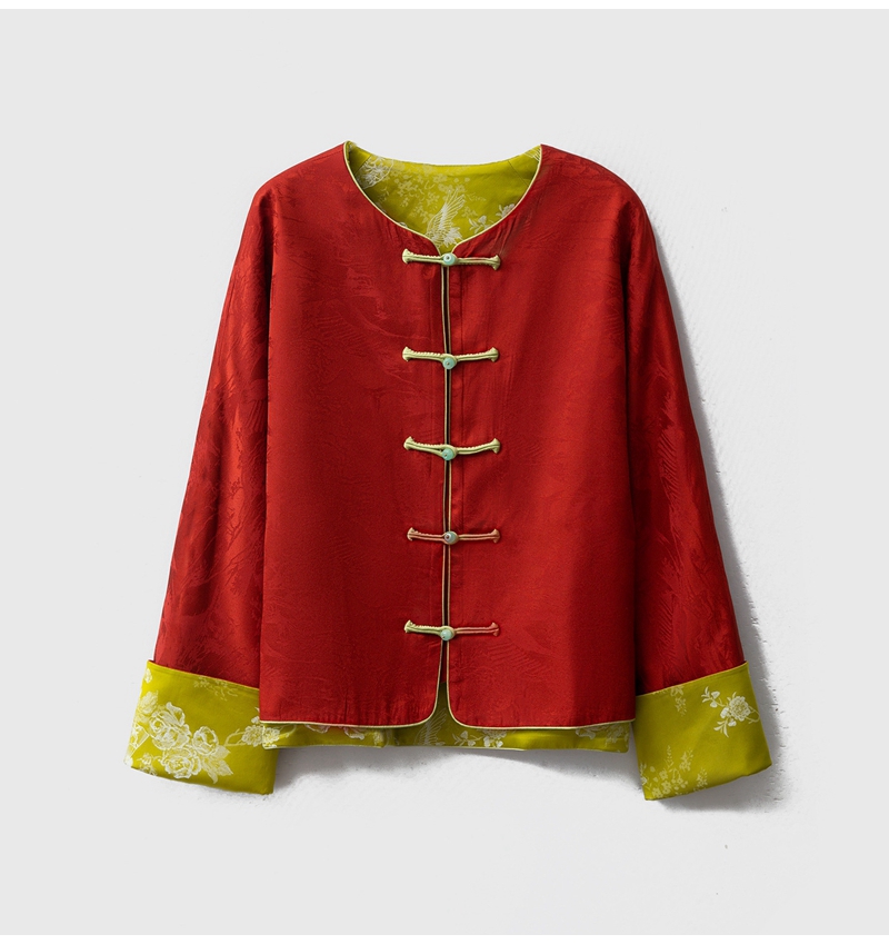 2026春双面穿新中式圆领长袖单排盘扣提花真丝外套