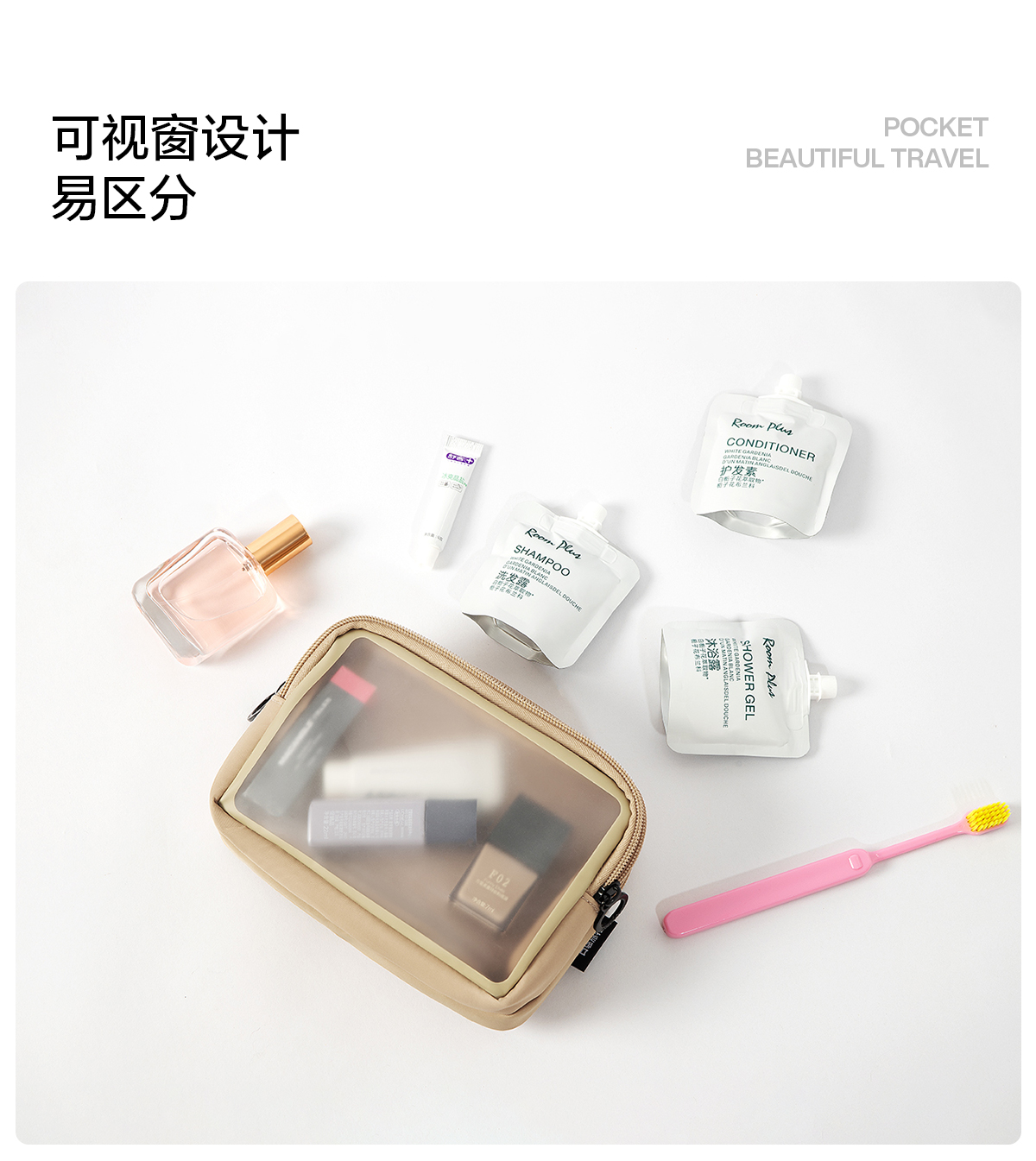 旅游出行必备 【口袋旅行 高定款洗漱包】PVC透明化妆包 大容量便携 手提化妆品收纳包洗漱包【口袋旅行 一次性产品套装】