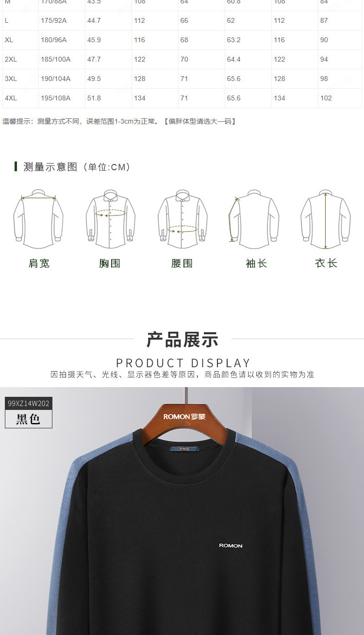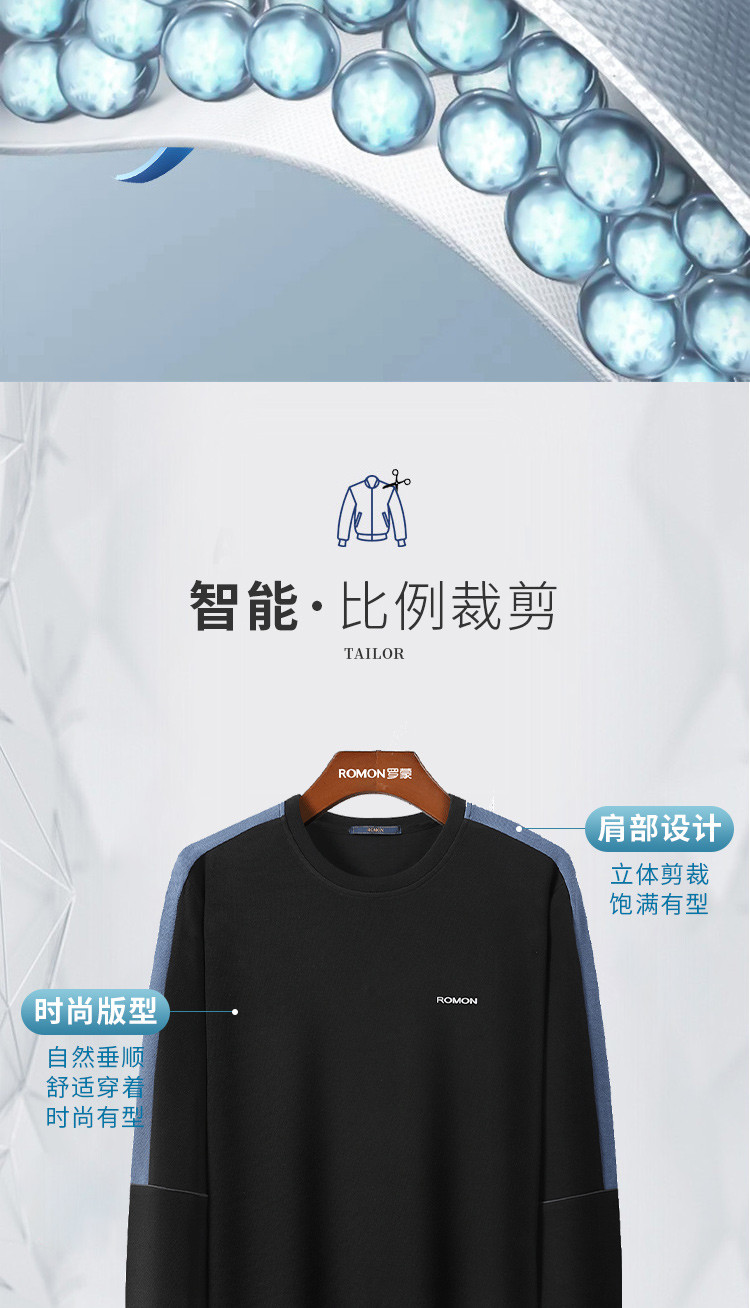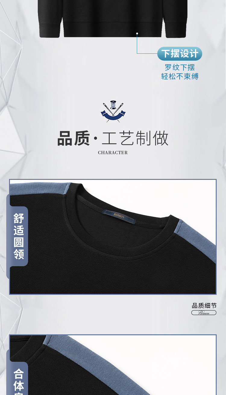 【高棉微弹力】罗蒙春季男装卫衣外套学院风拼色款套头长袖T恤卫衣男