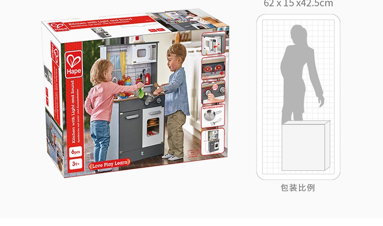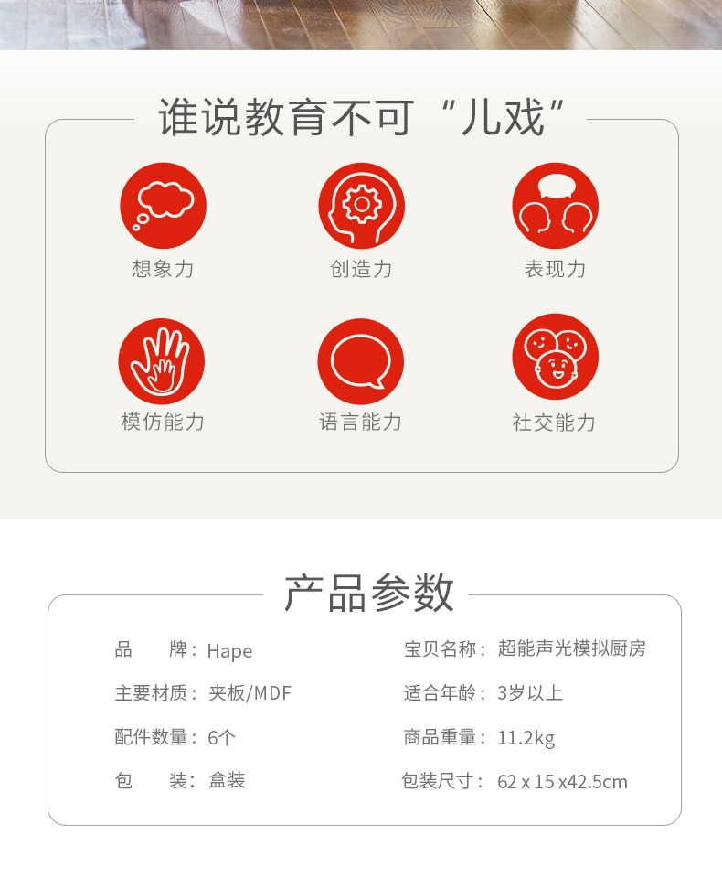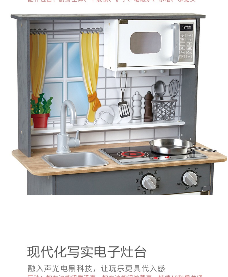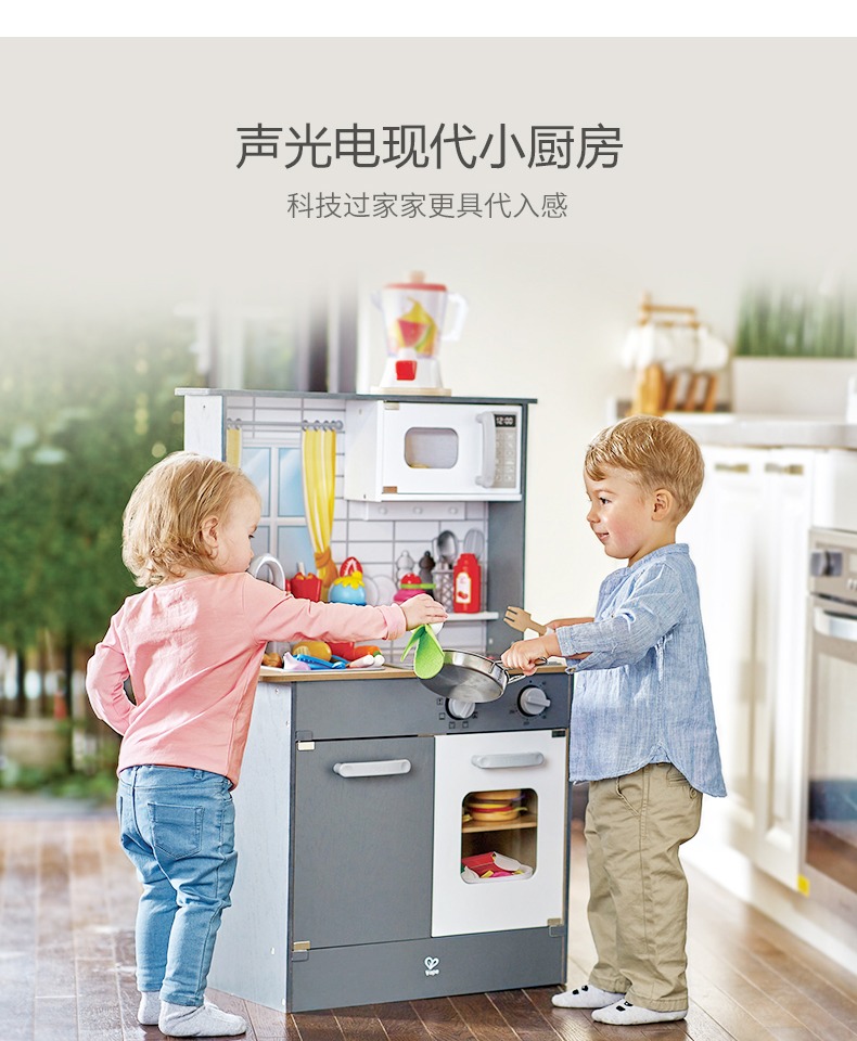 Hape超能声光模拟厨房幼儿园儿童过家家仿真厨房玩具角色扮演游戏区